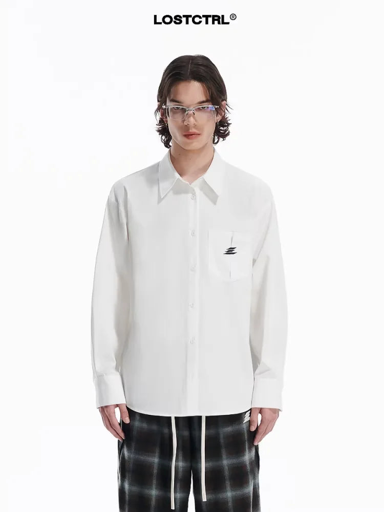 LOSTCTRL Unisex White Embroidered Logo Shirt
