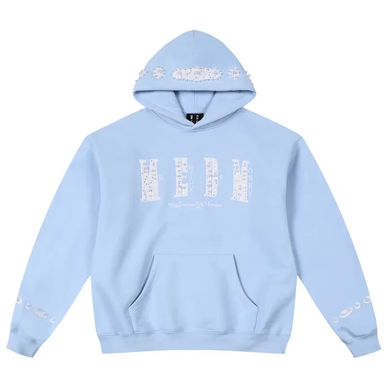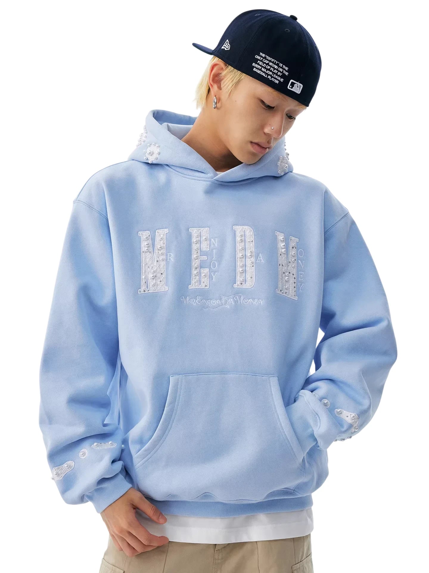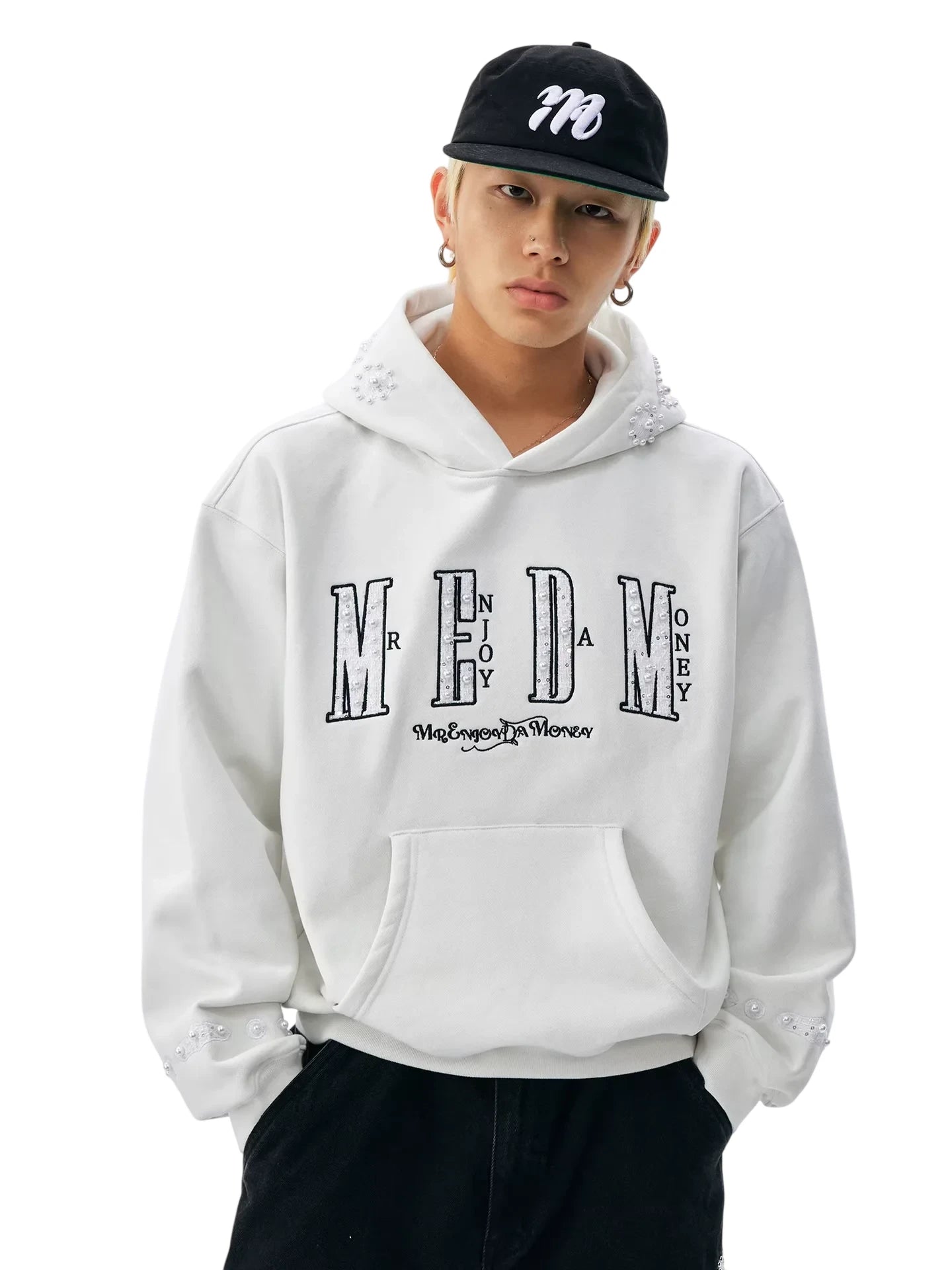MEDM Women's Oversized Hooded Sweatshirt with Embroidered Lettering and Patch Details