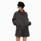 PUKI 45% Merino Wool Double-Sided Belted Coat with Scarf Collar