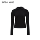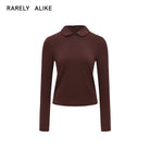 RARELY ALIKE Women's Long Sleeve Knit Polo Top - White, Black, Brown