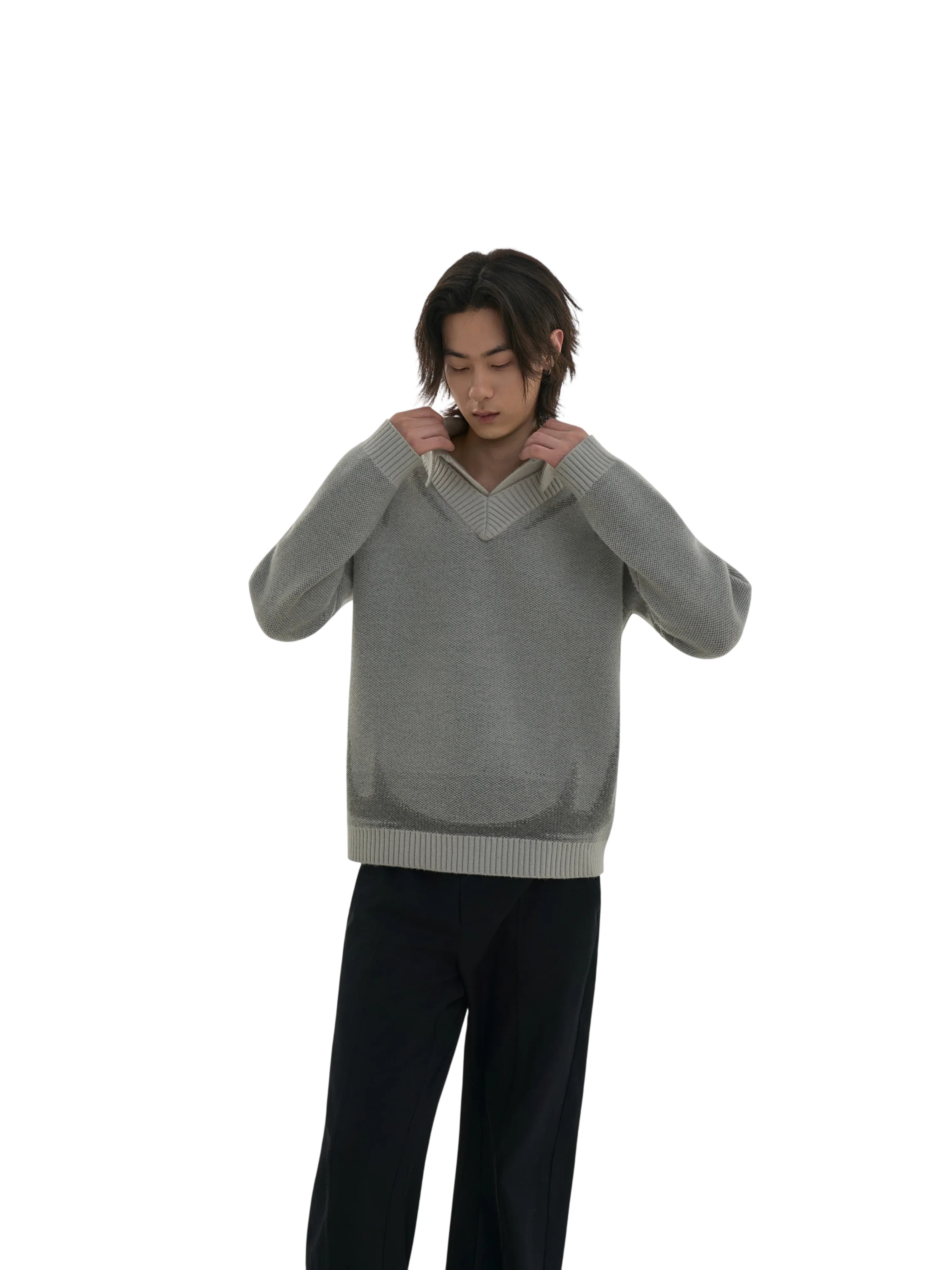 Simple Project Hooded Jacquard Sweater with Diamond Pattern