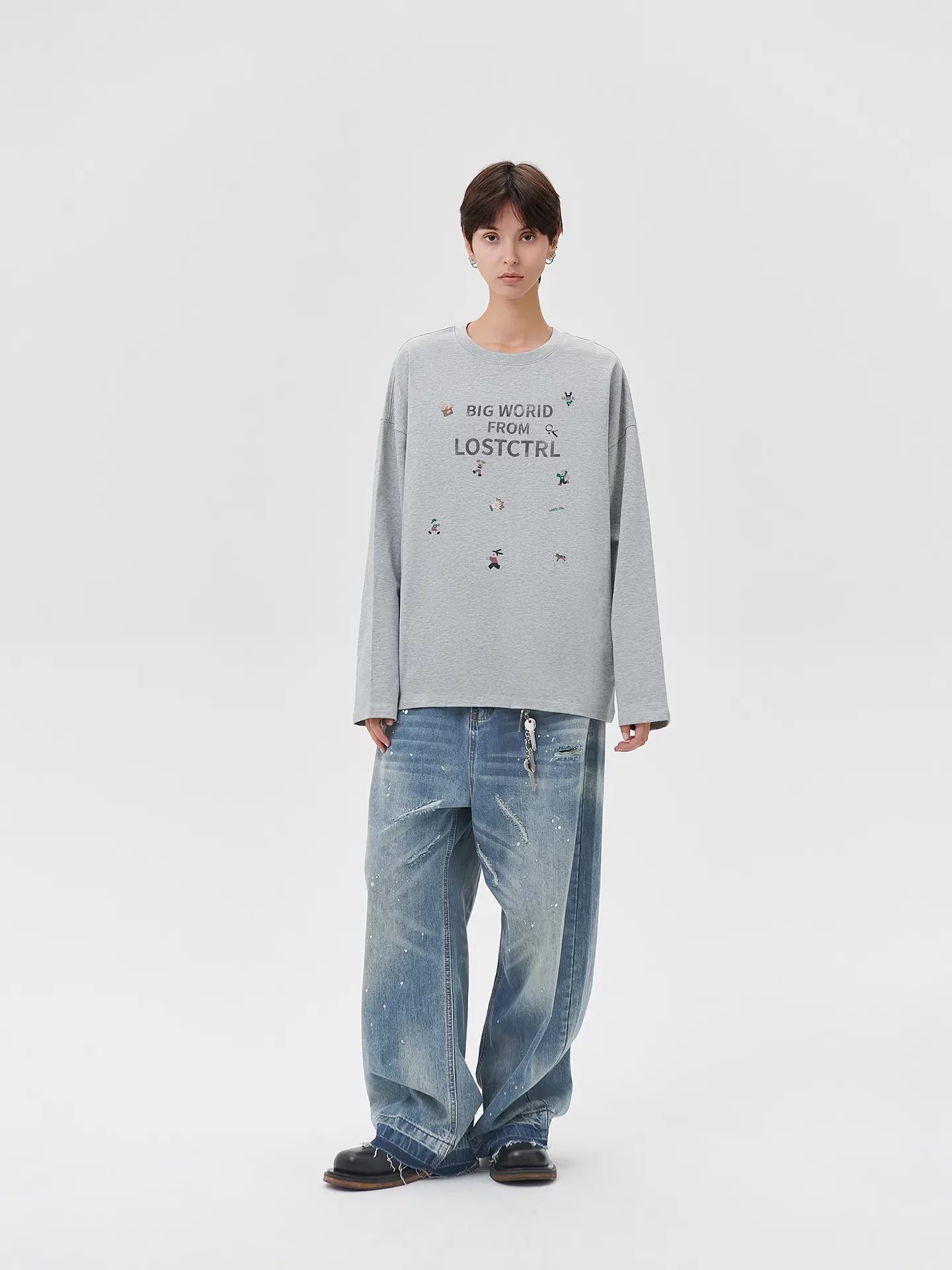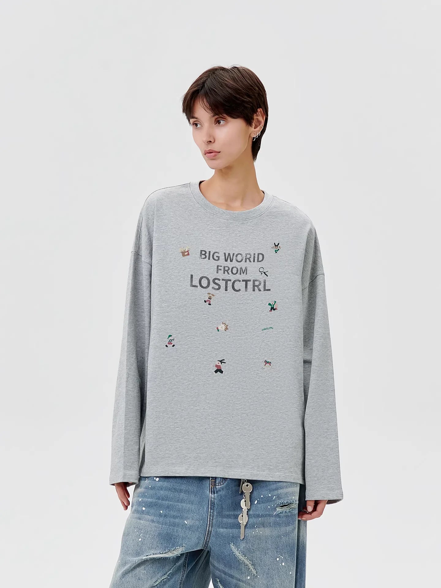 LOSTCTRL Unisex Oversized Cotton T-Shirt with Logo Print