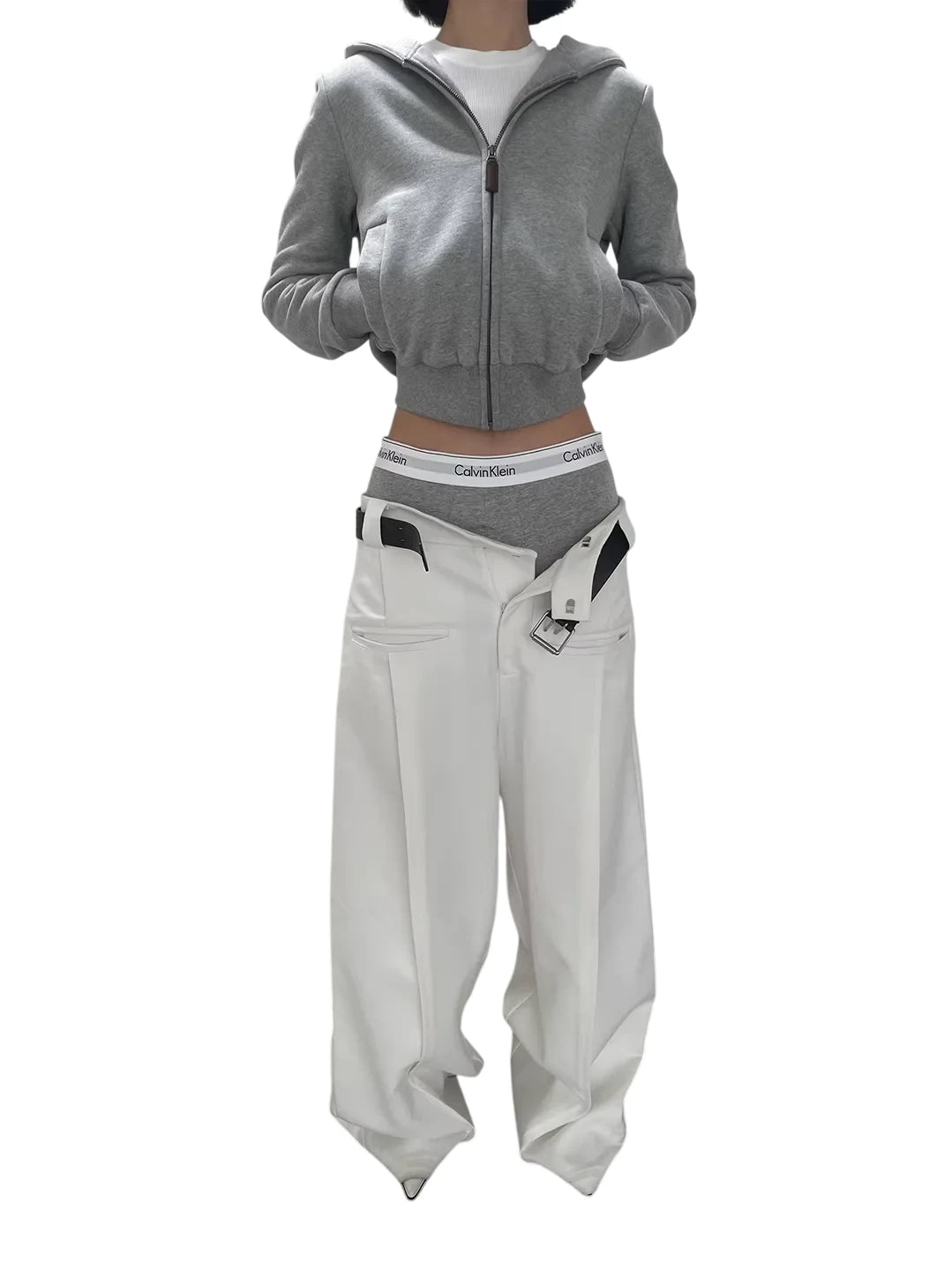 Fax Copy Express Faux Two-Piece Slim Fit Long Sleeve Crop Top