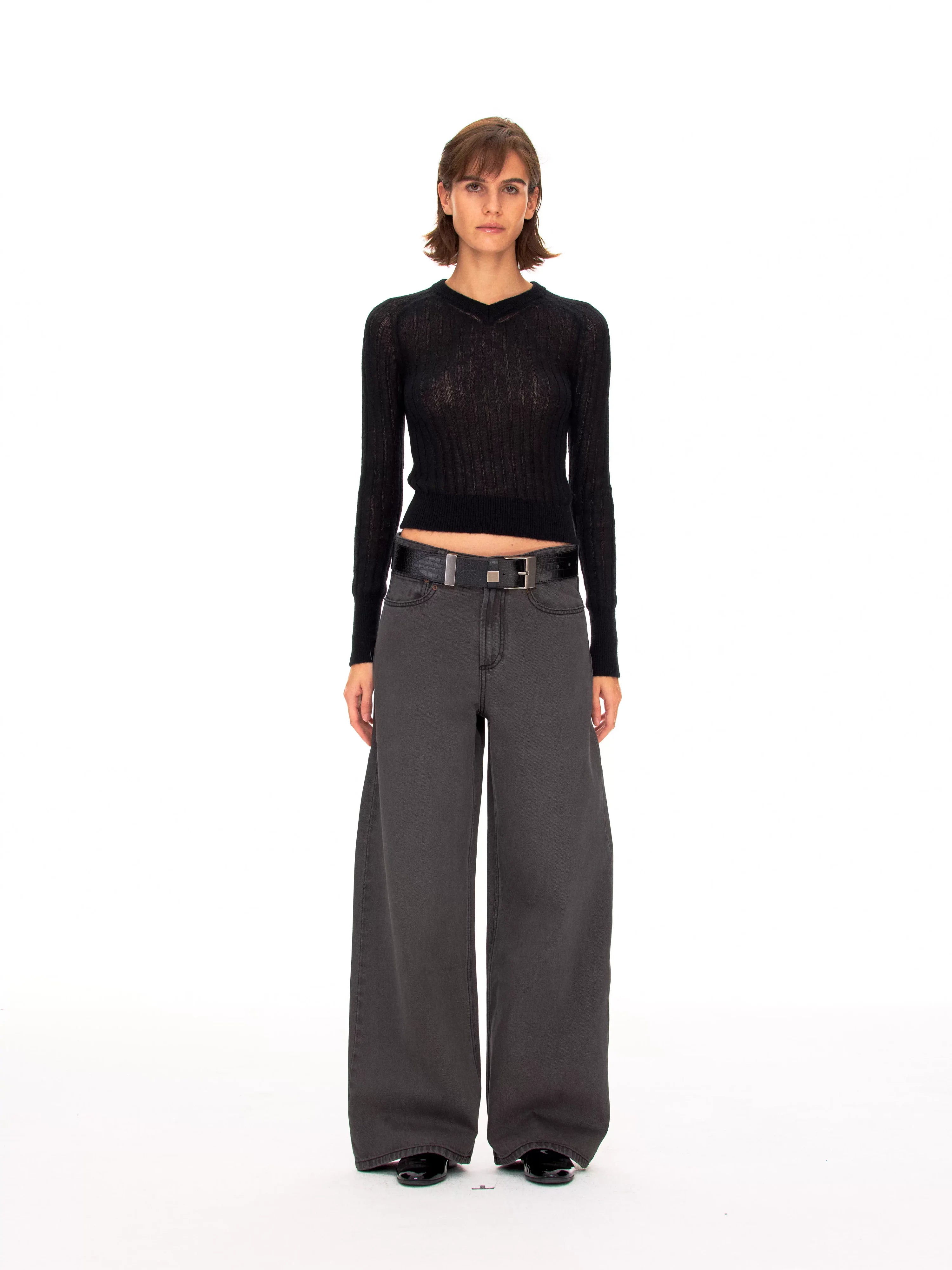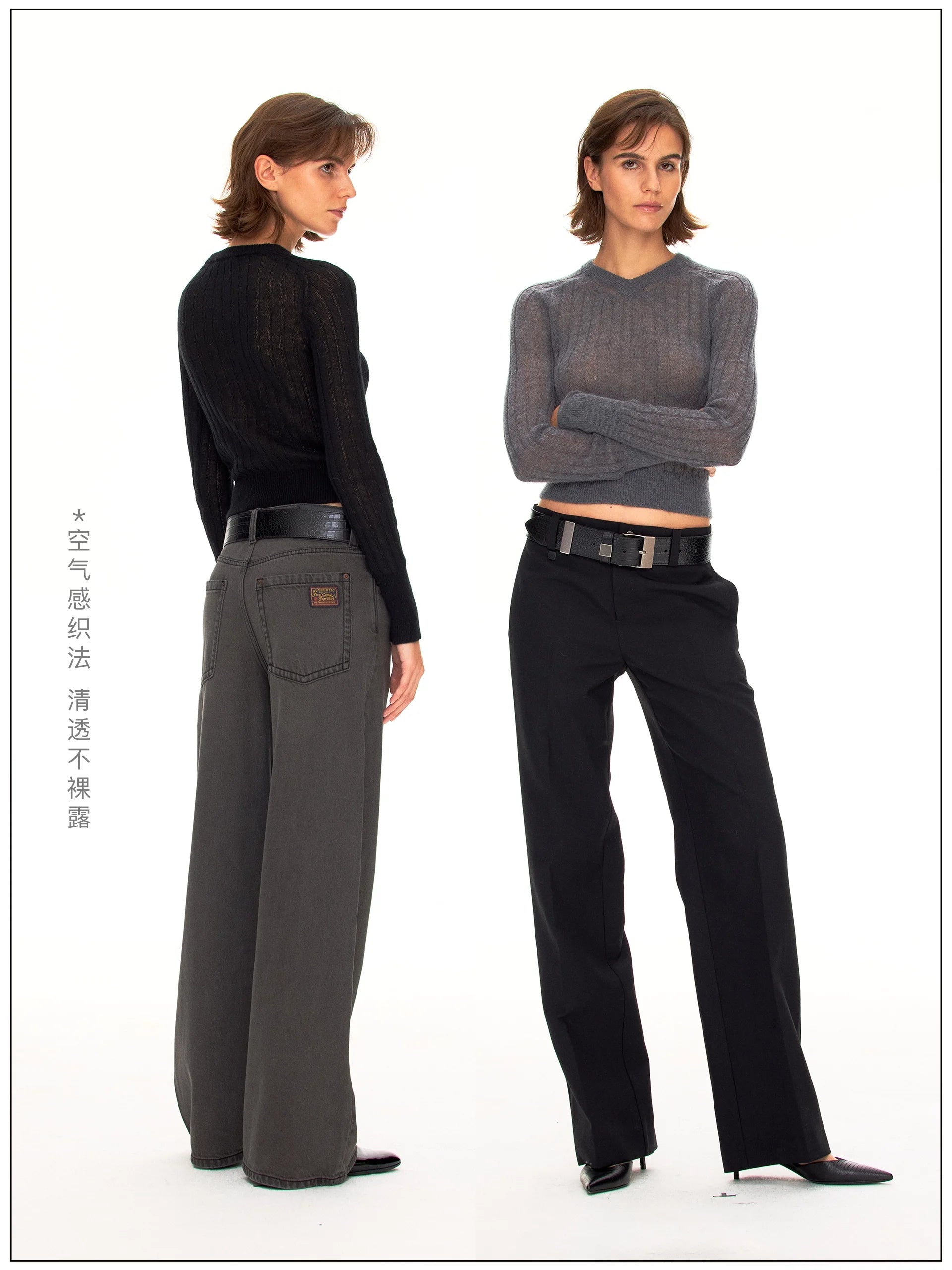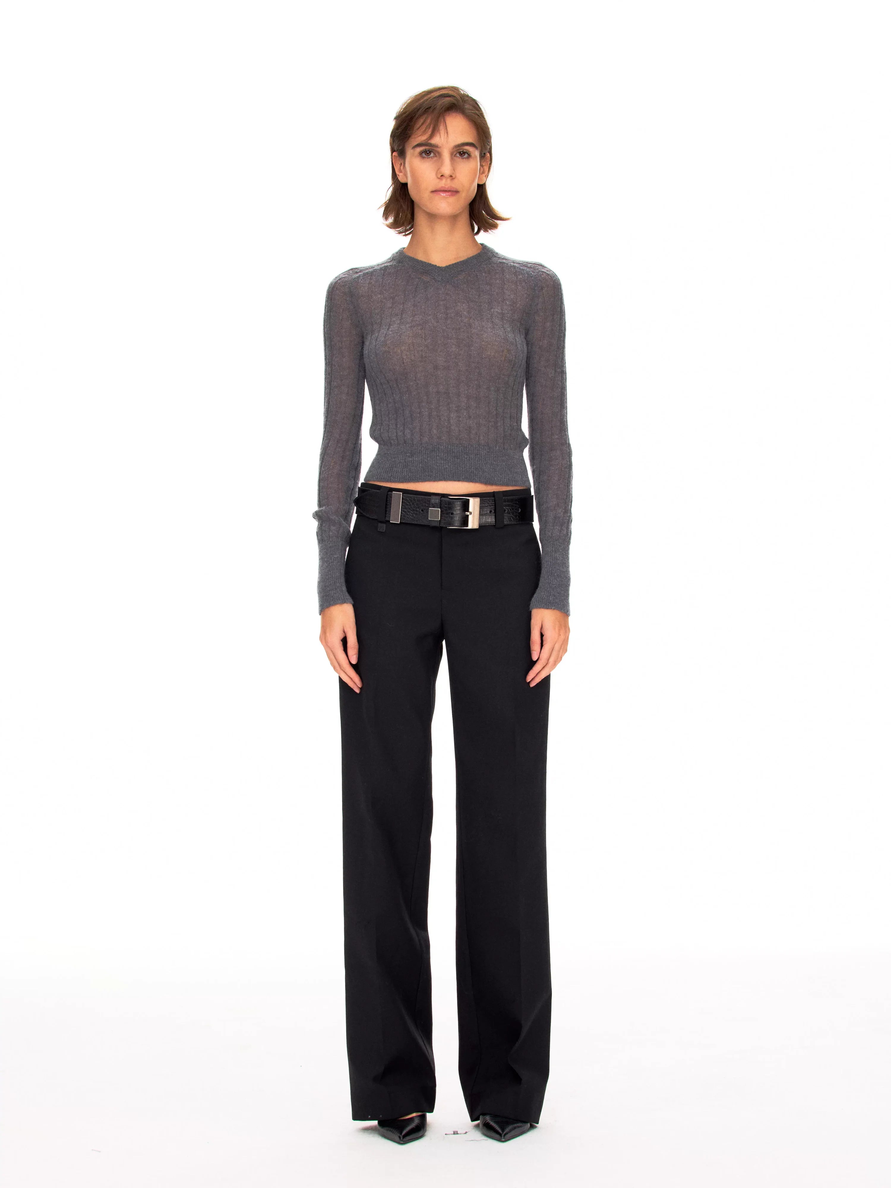 Fax Copy Express Sheer Ribbed Knit Pullover