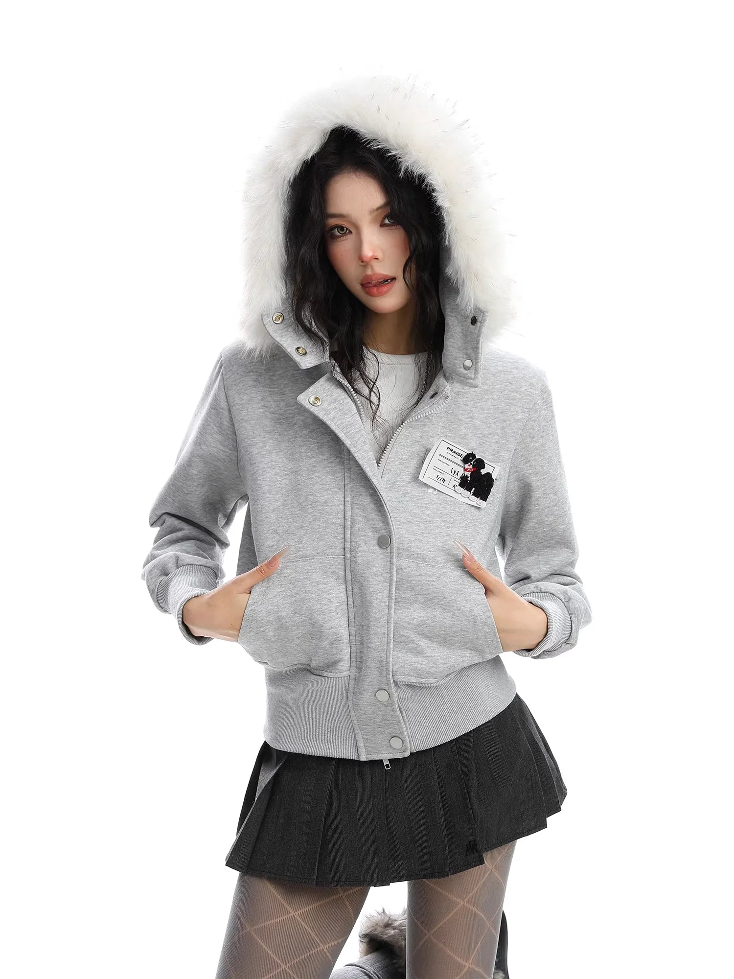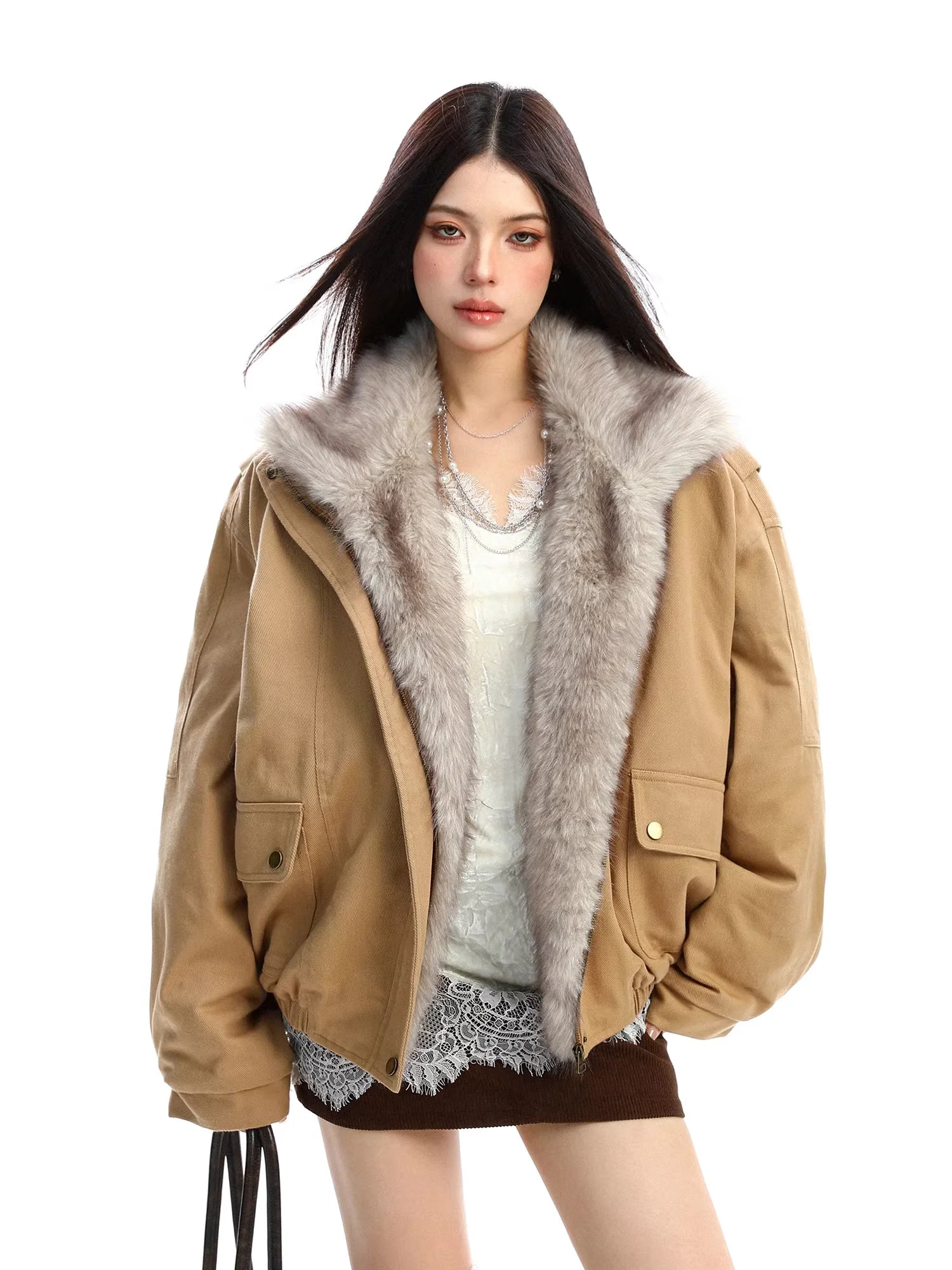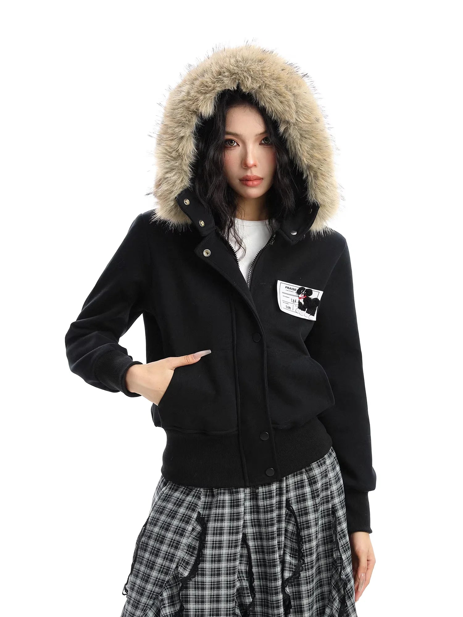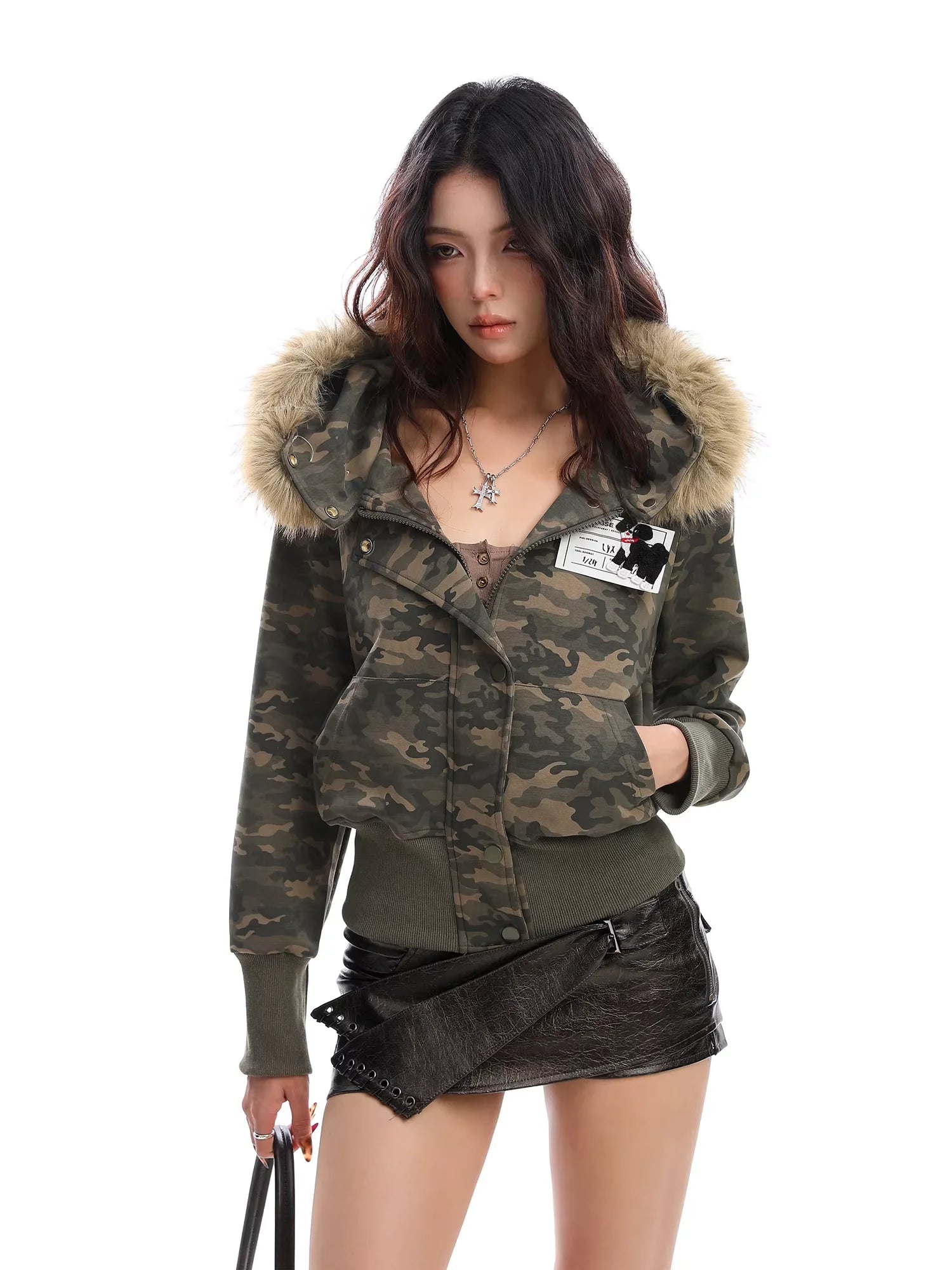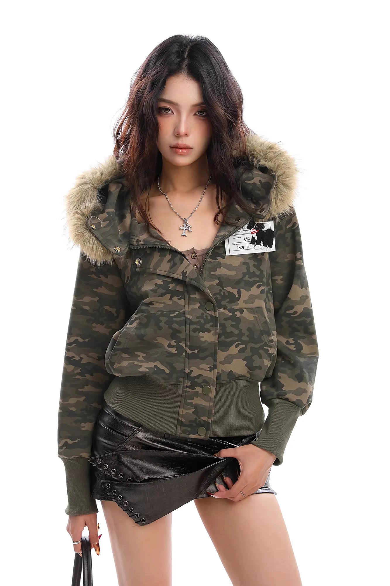 BIGGOLD STUDIO Women's Camouflage Hooded Jacket with Detachable Faux Fur Collar