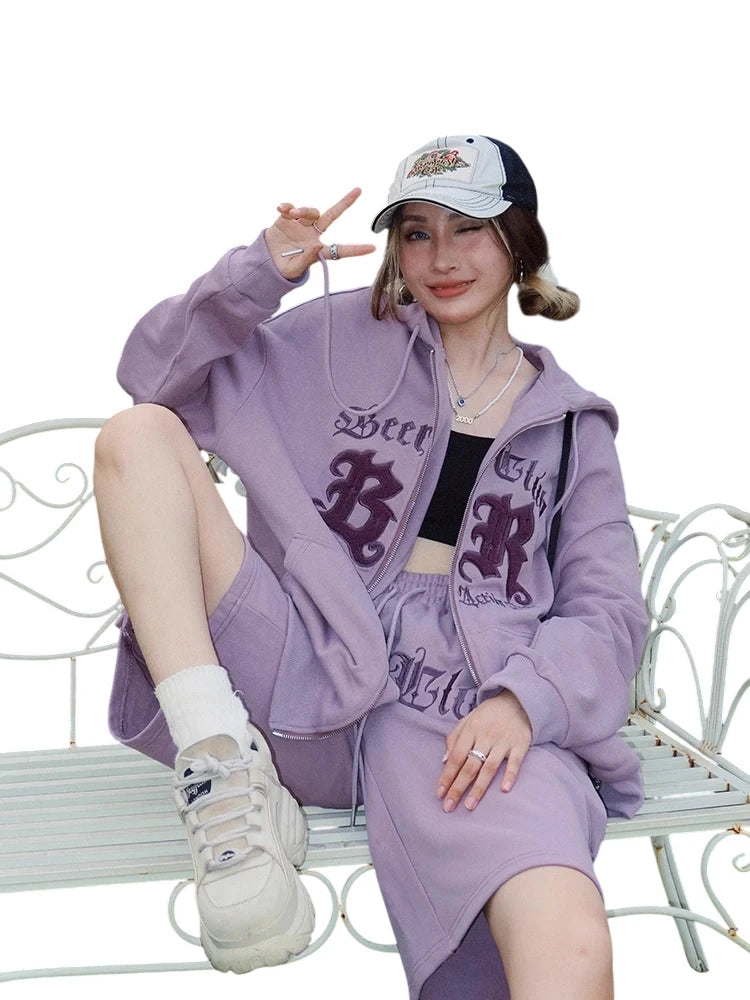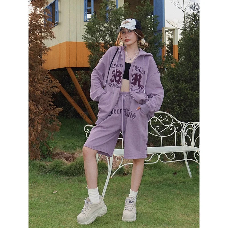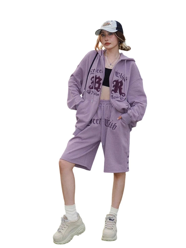BeerBro Gothic Embroidered Oversized Hoodie and Shorts Set