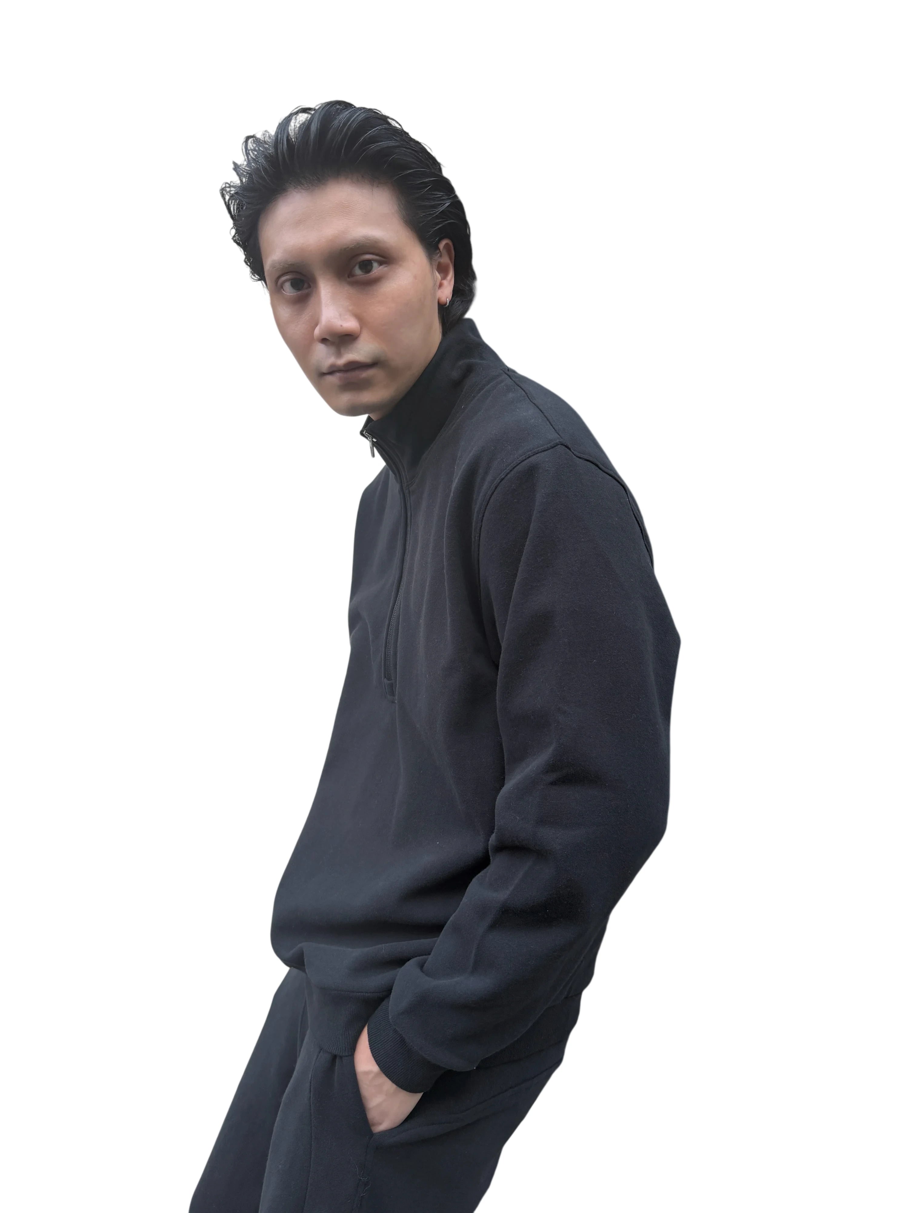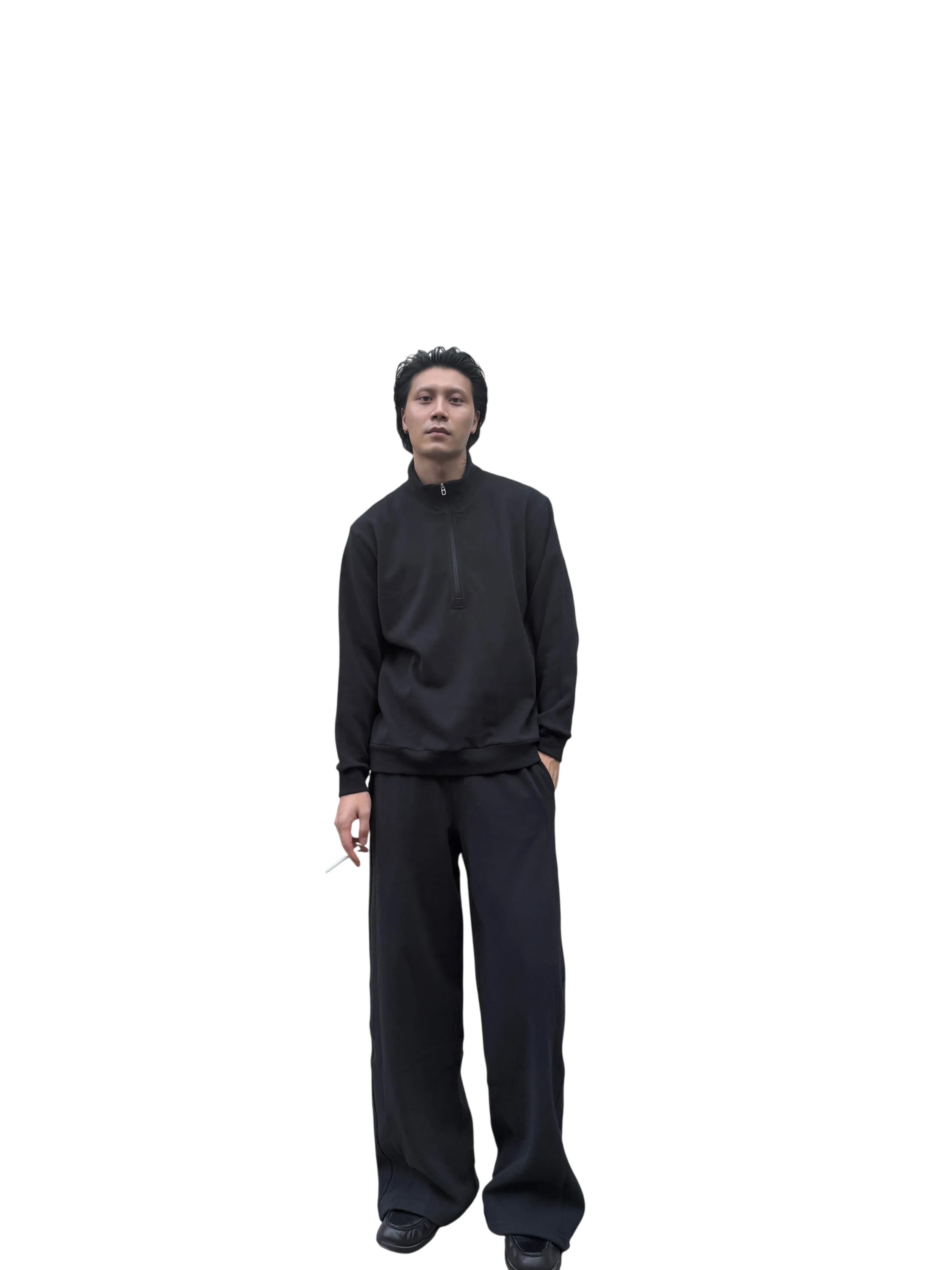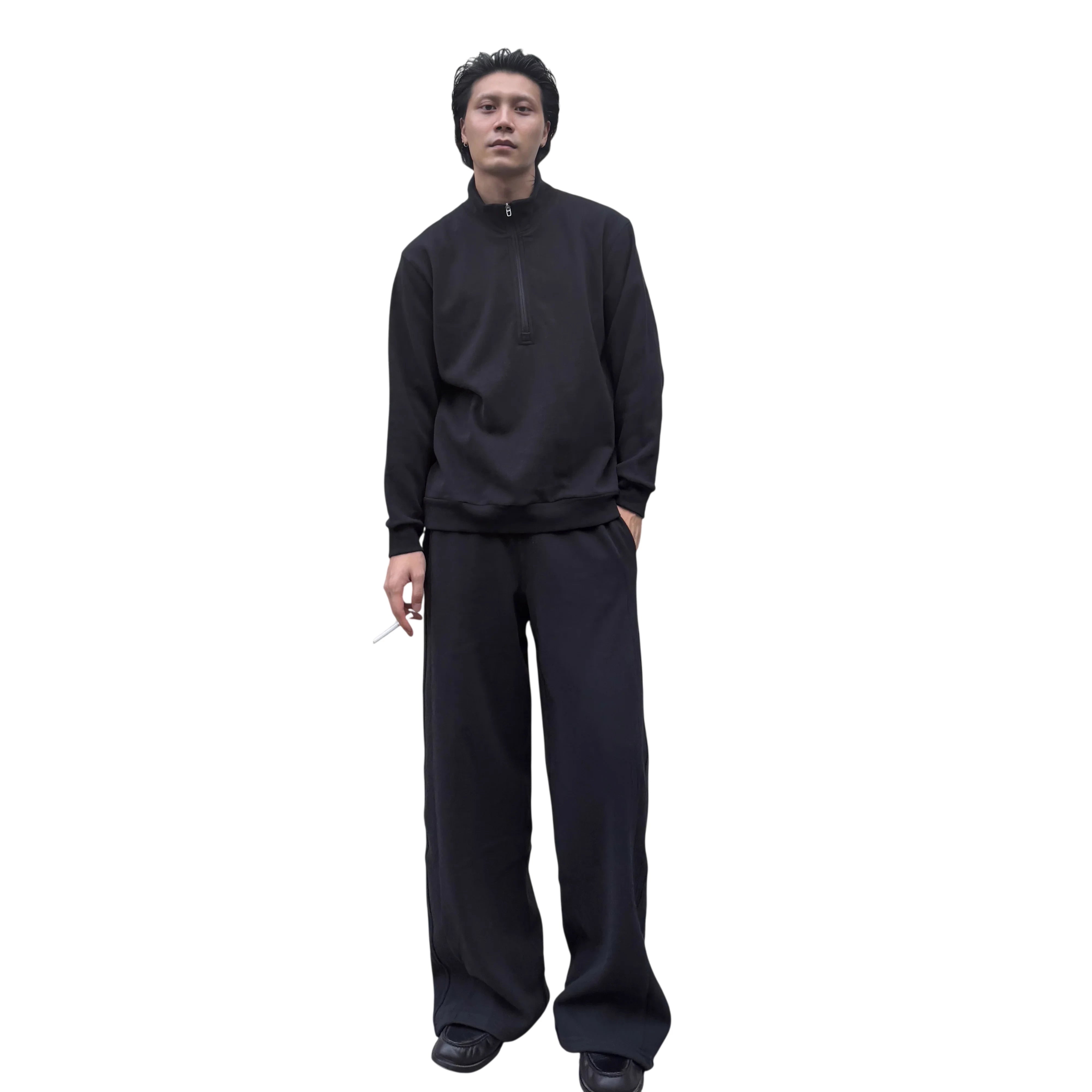 Designed for both comfort and style, this men's brushed cotton pullover sweatshirt features a sporty half-zip front and a stand-up collar. The soft, thick fabric provides warmth and a cozy feel, making it perfect for cooler weather. With its relaxed fit and minimalist design, it's an ideal choice for casual, everyday wear.