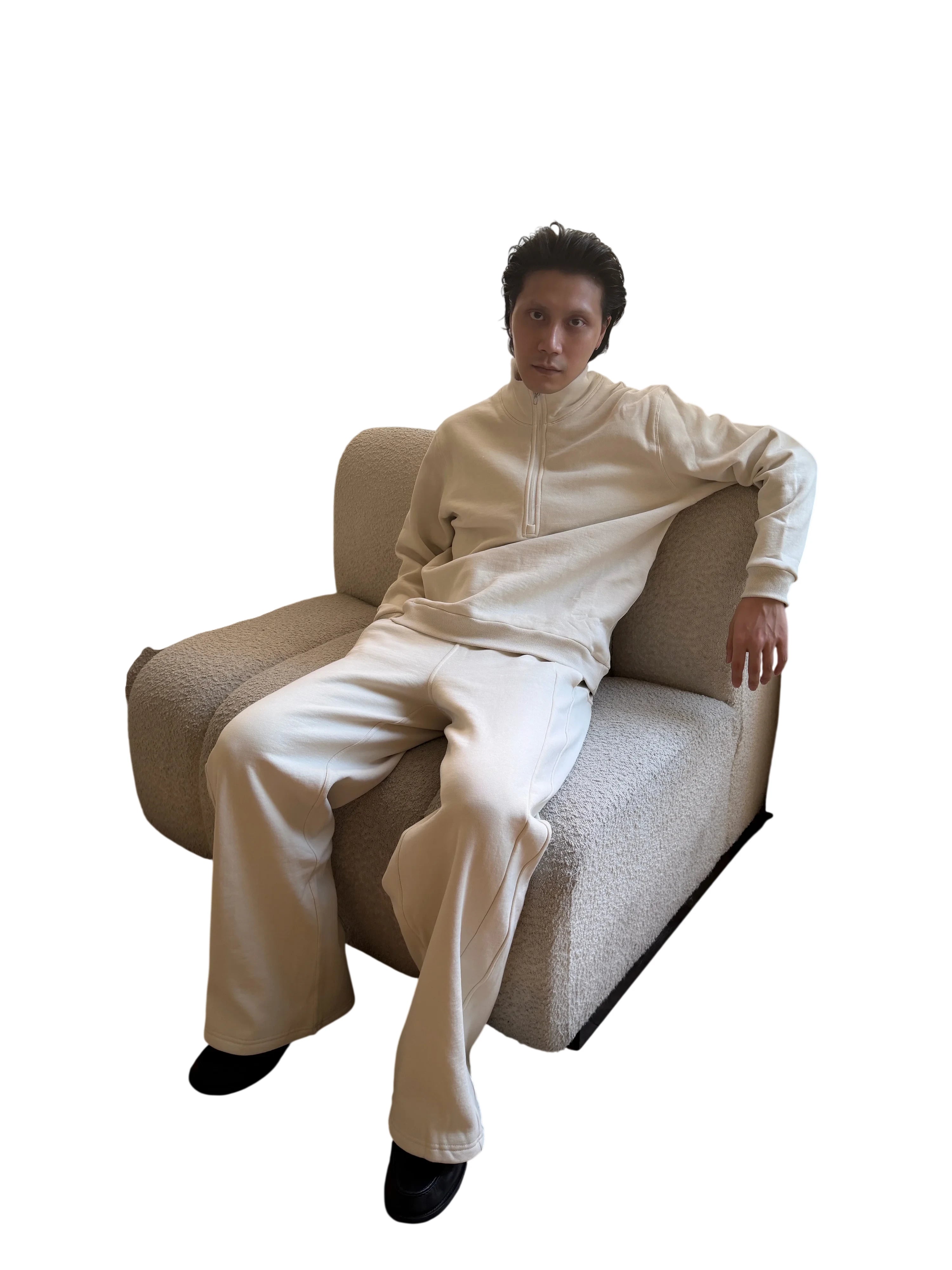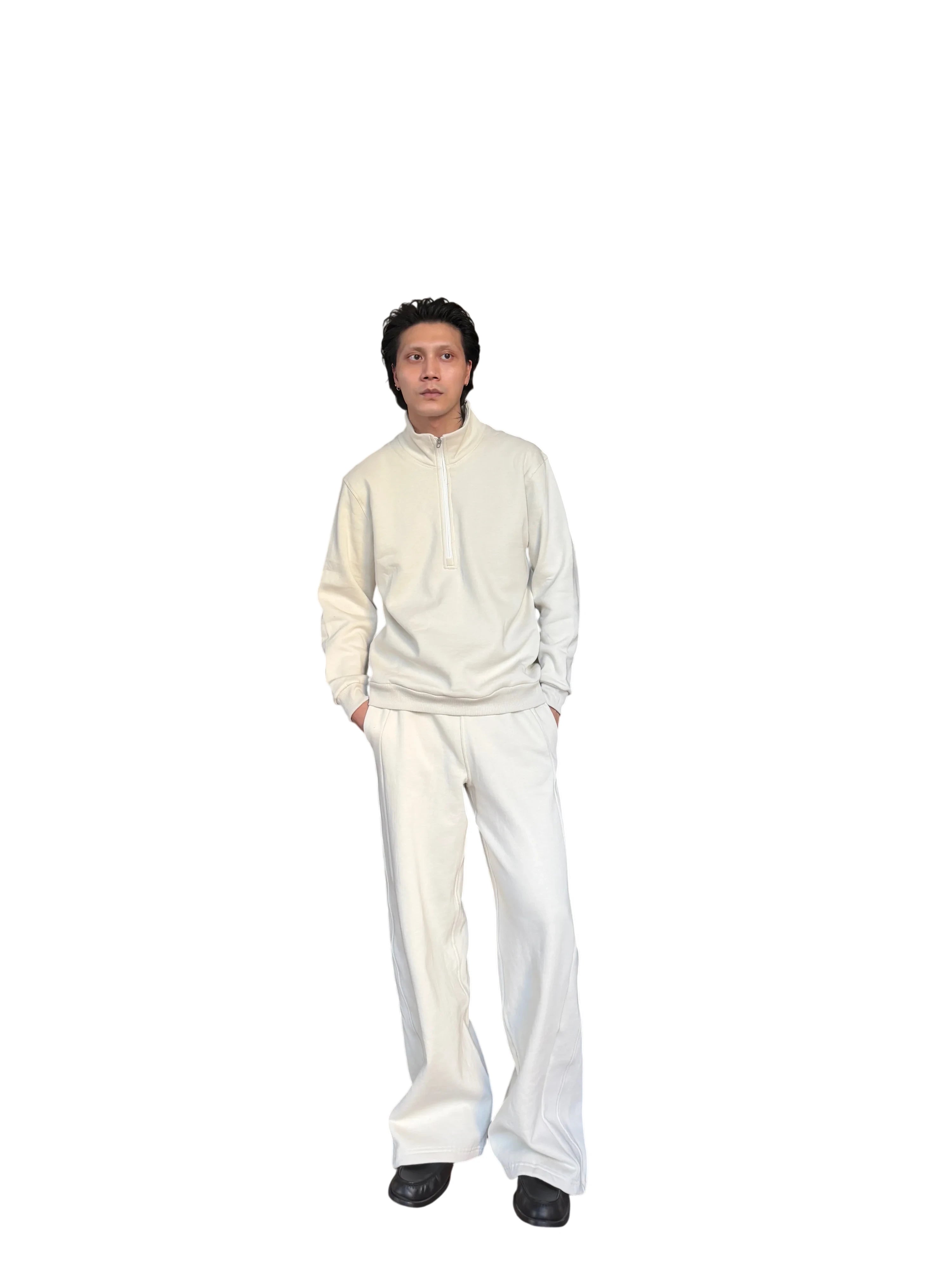 TRIANGLE PROJECT Brushed Cotton Half-Zip Pullover Sweatshirt