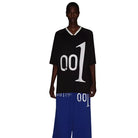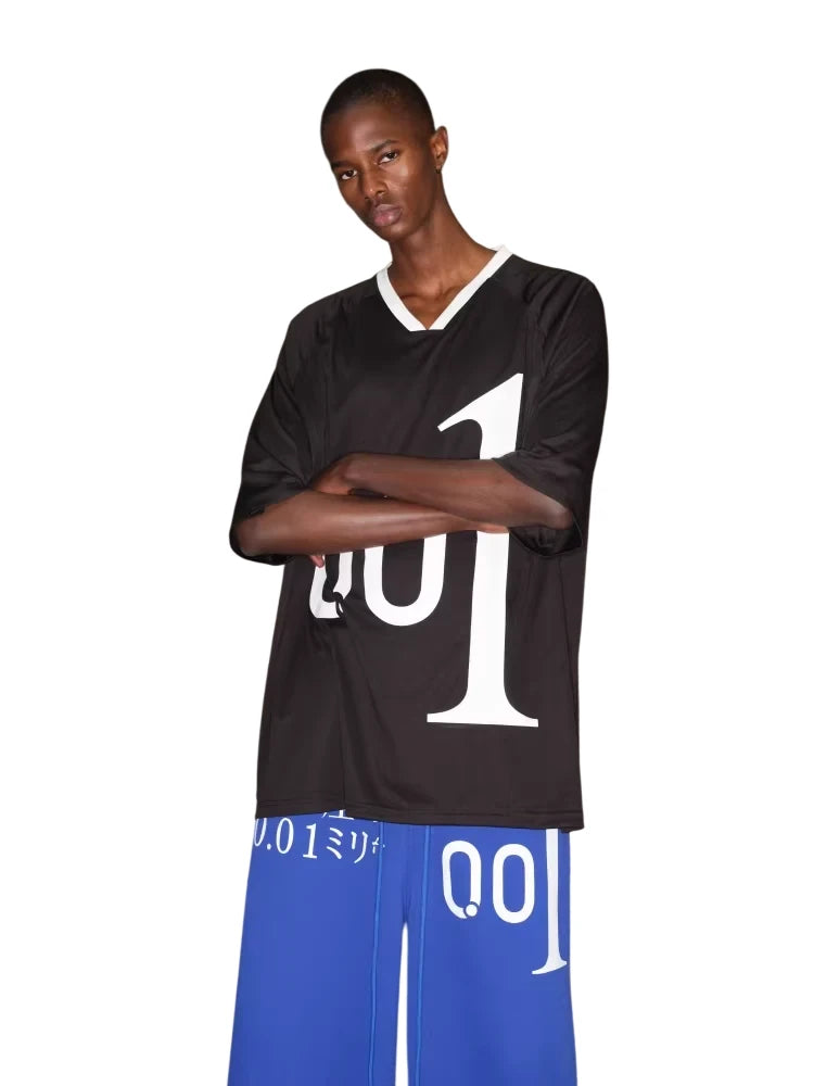 Elevate your streetwear look with this men's short sleeve baseball shirt featuring bold contrast colors and oversized typography prints. Designed with a relaxed fit and sporty flair, the shirt includes a V-neckline and standout '0.0' and '1' graphic elements for an urban edge. Perfect for casual outings or making a fashion statement.