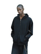 TRIANGLE PROJECT Unisex Loose Fit Zip Hoodie with Gem Embellishments