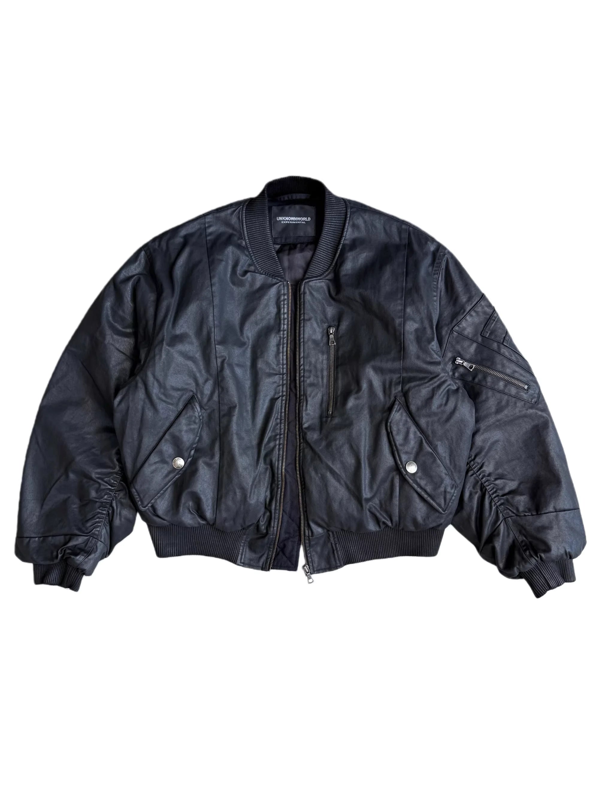 UNKNOWNWORLD Deconstructed Waxed Wool Padded Bomber Jacket
