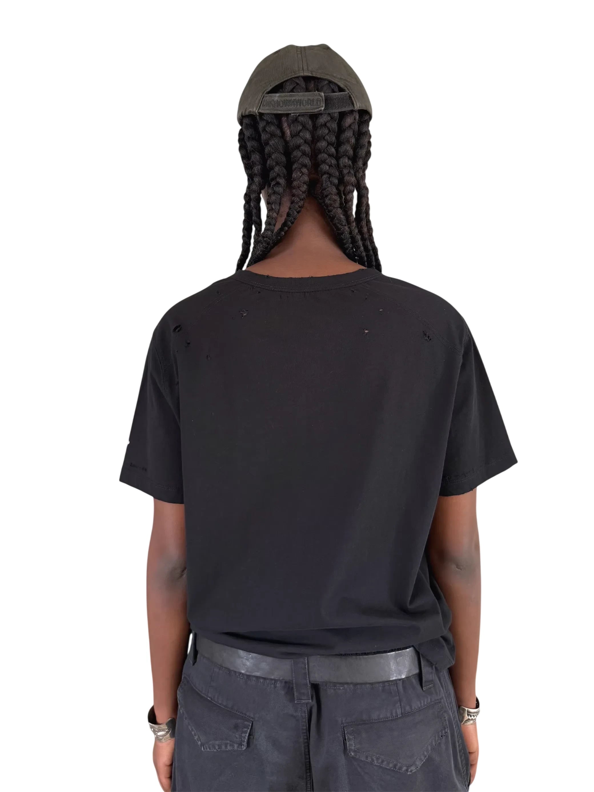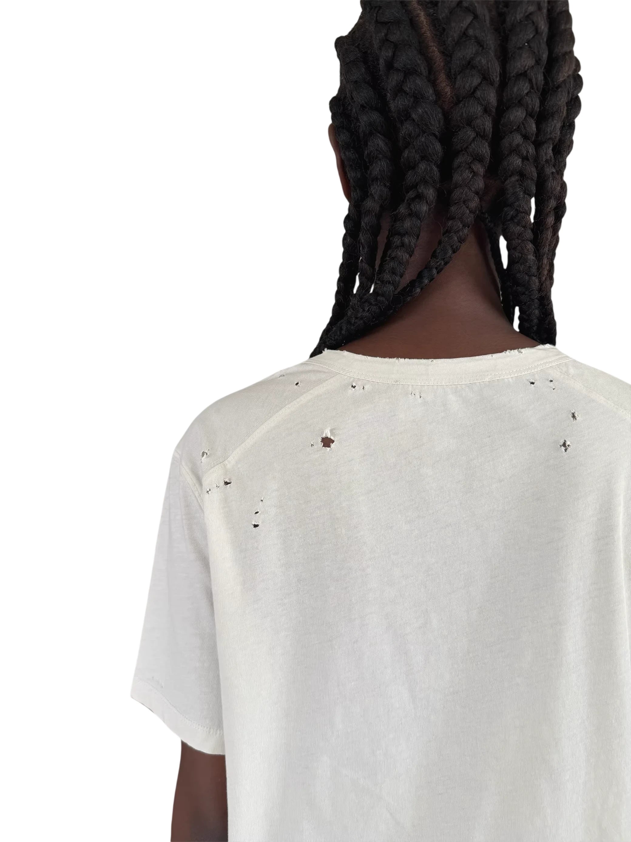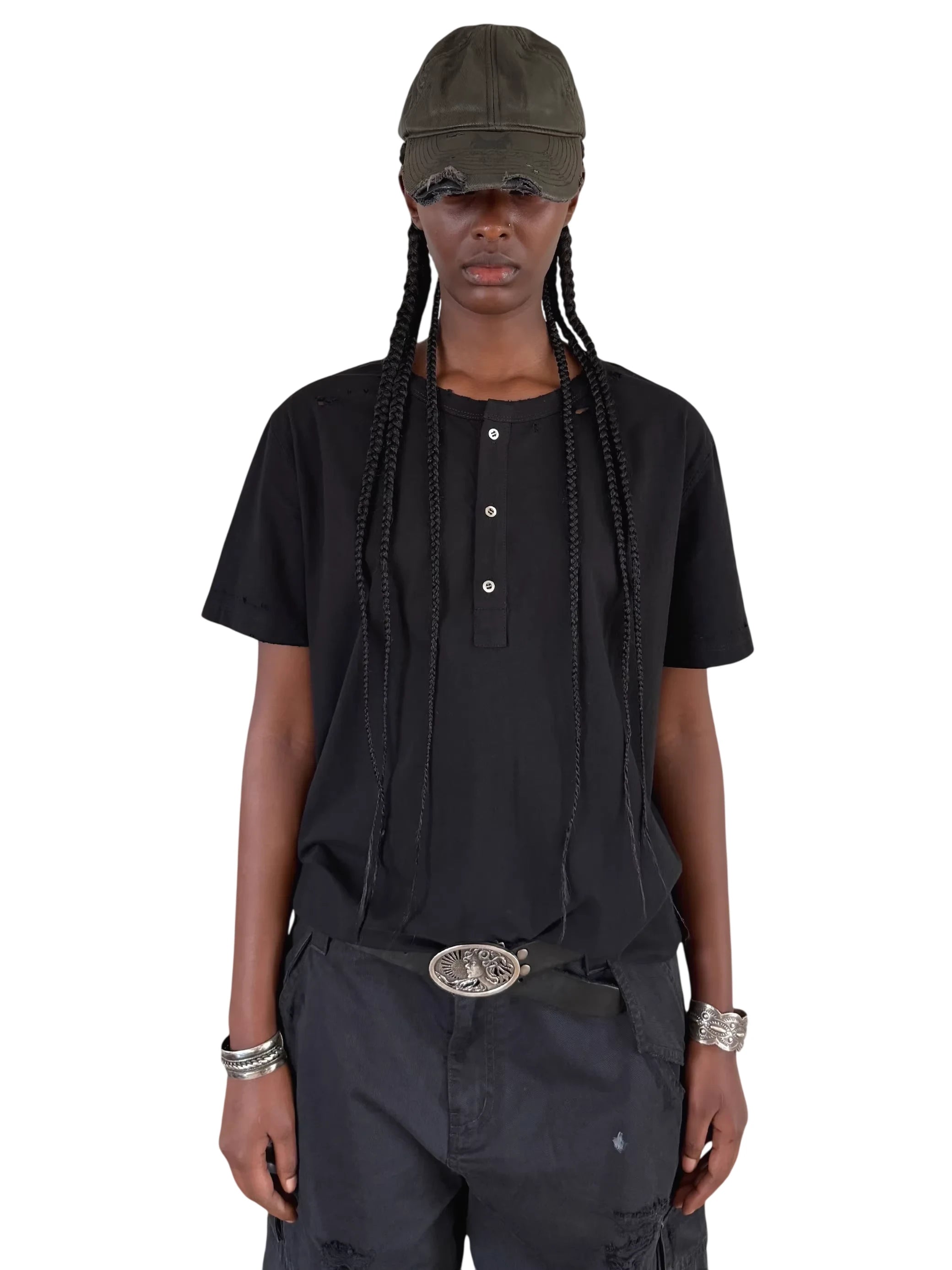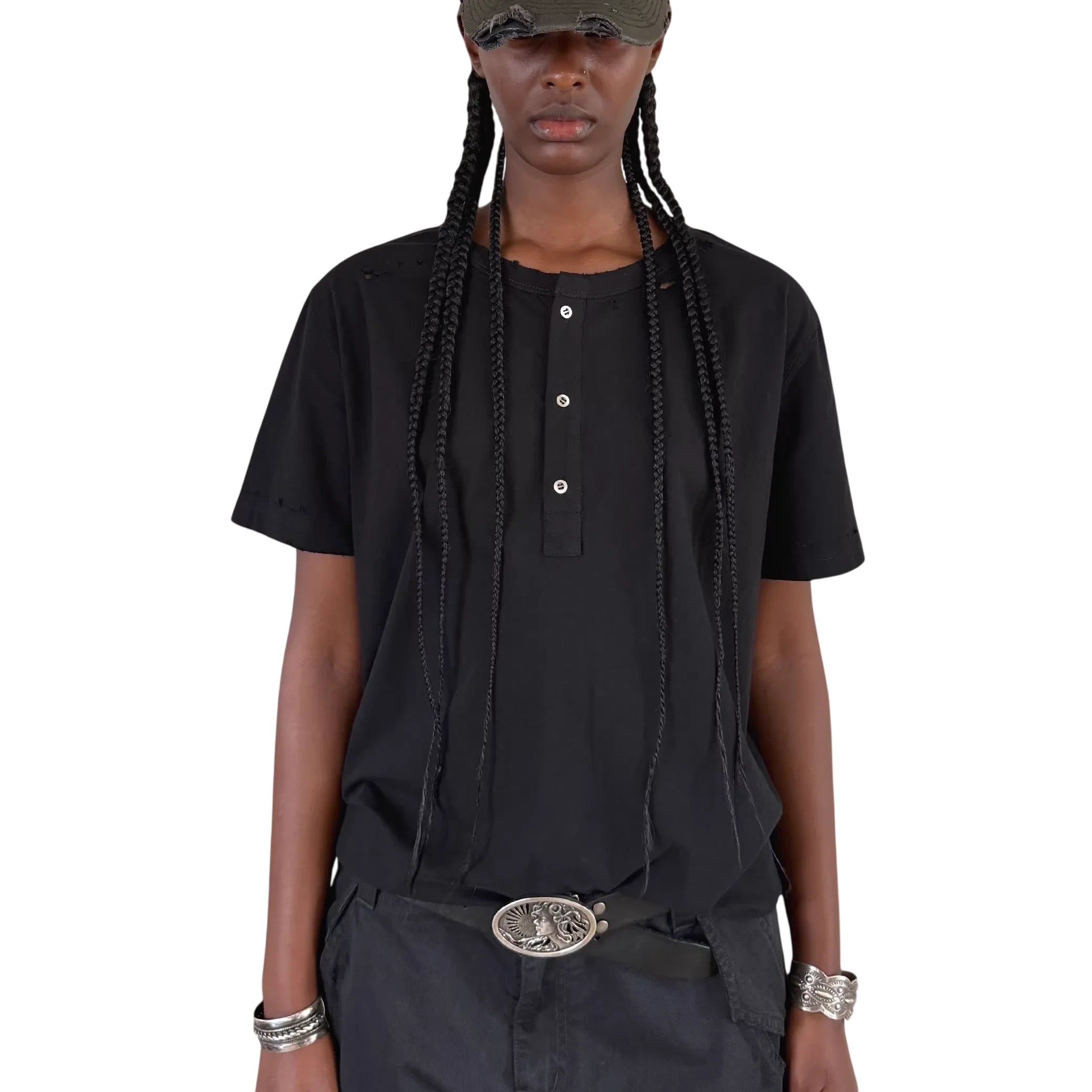 UNKNOWNWORLD Distressed Henley Short Sleeve Shirt with Mother-of-Pearl Buttons