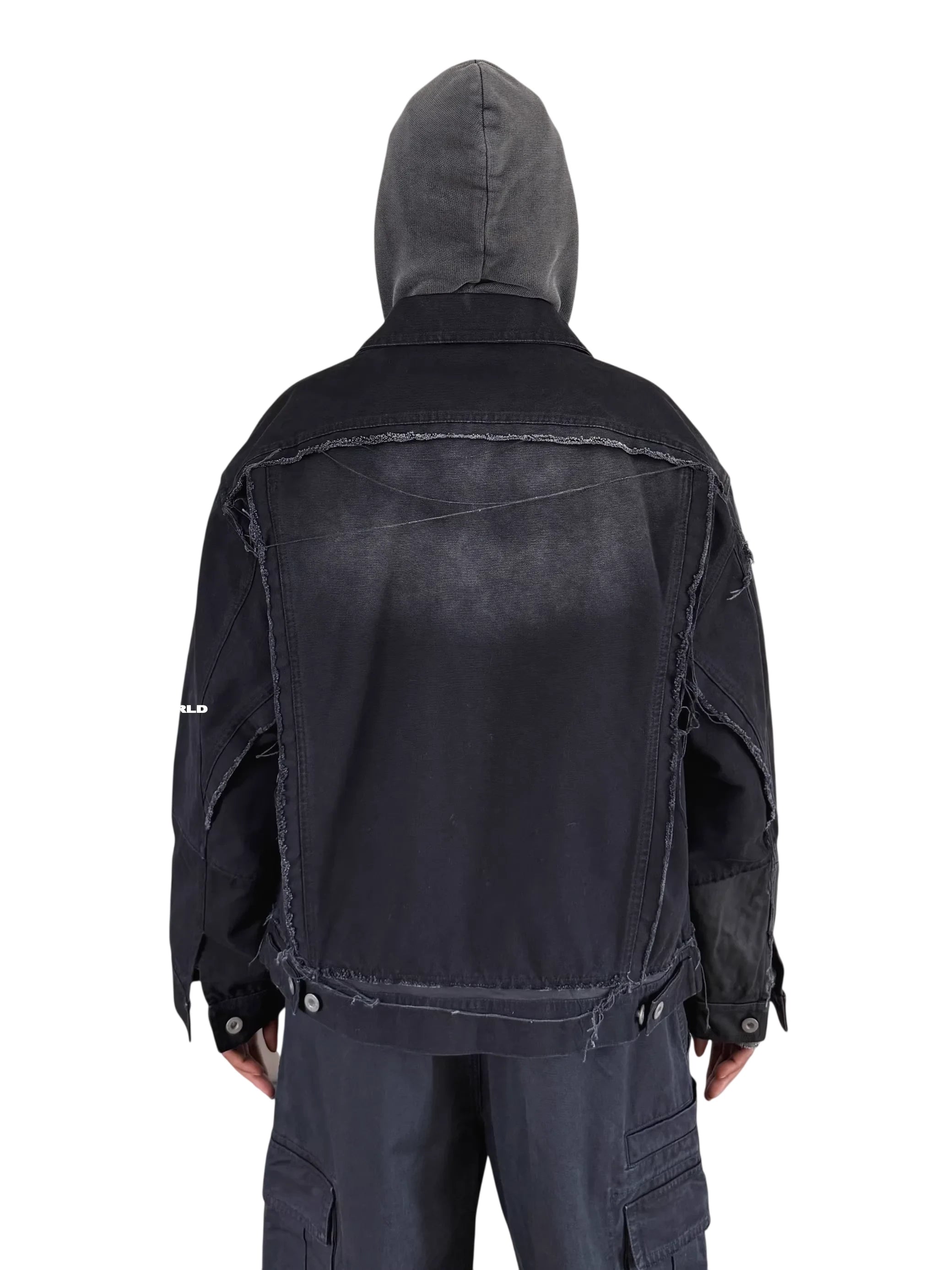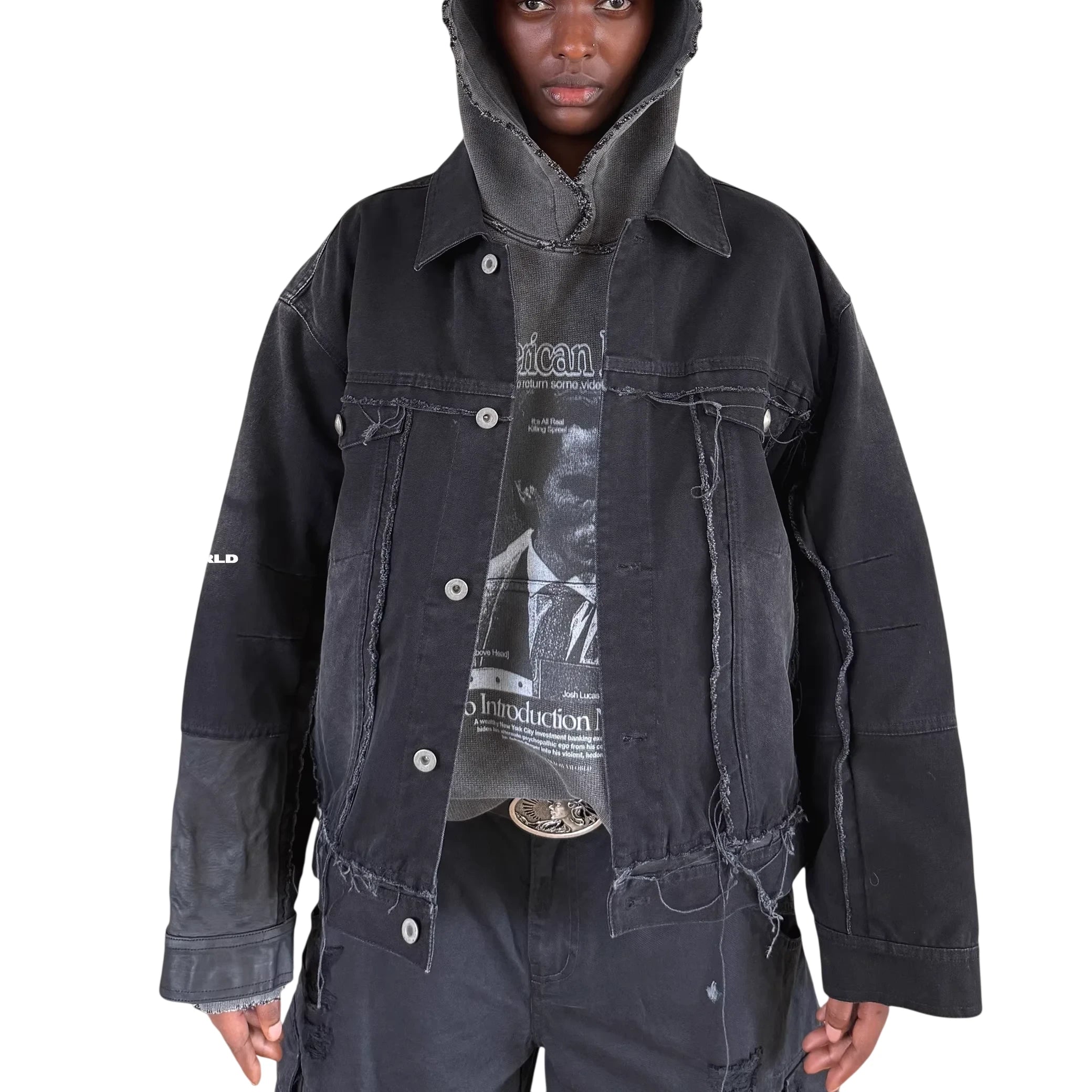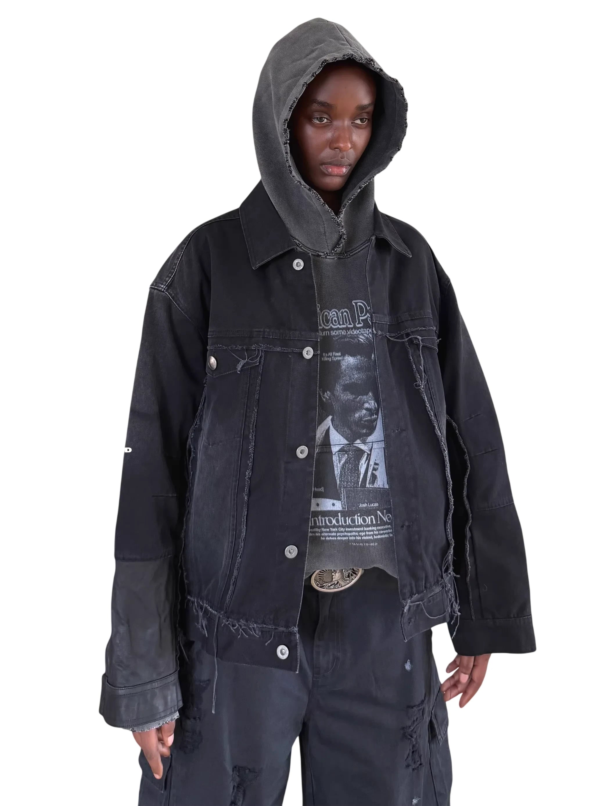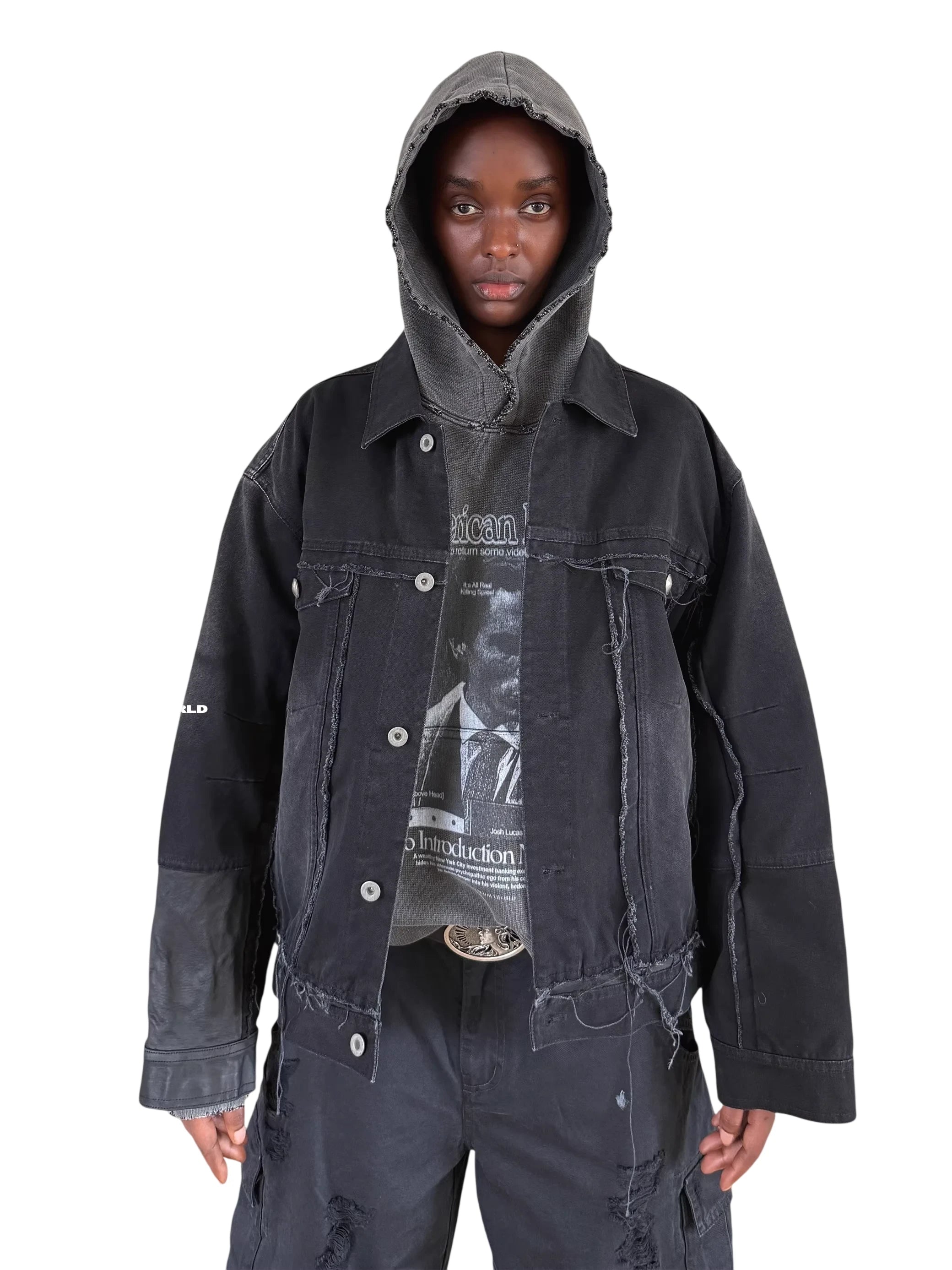 UNKNOWNWORLD Oversized Deconstructed Frayed Patchwork Denim Jacket