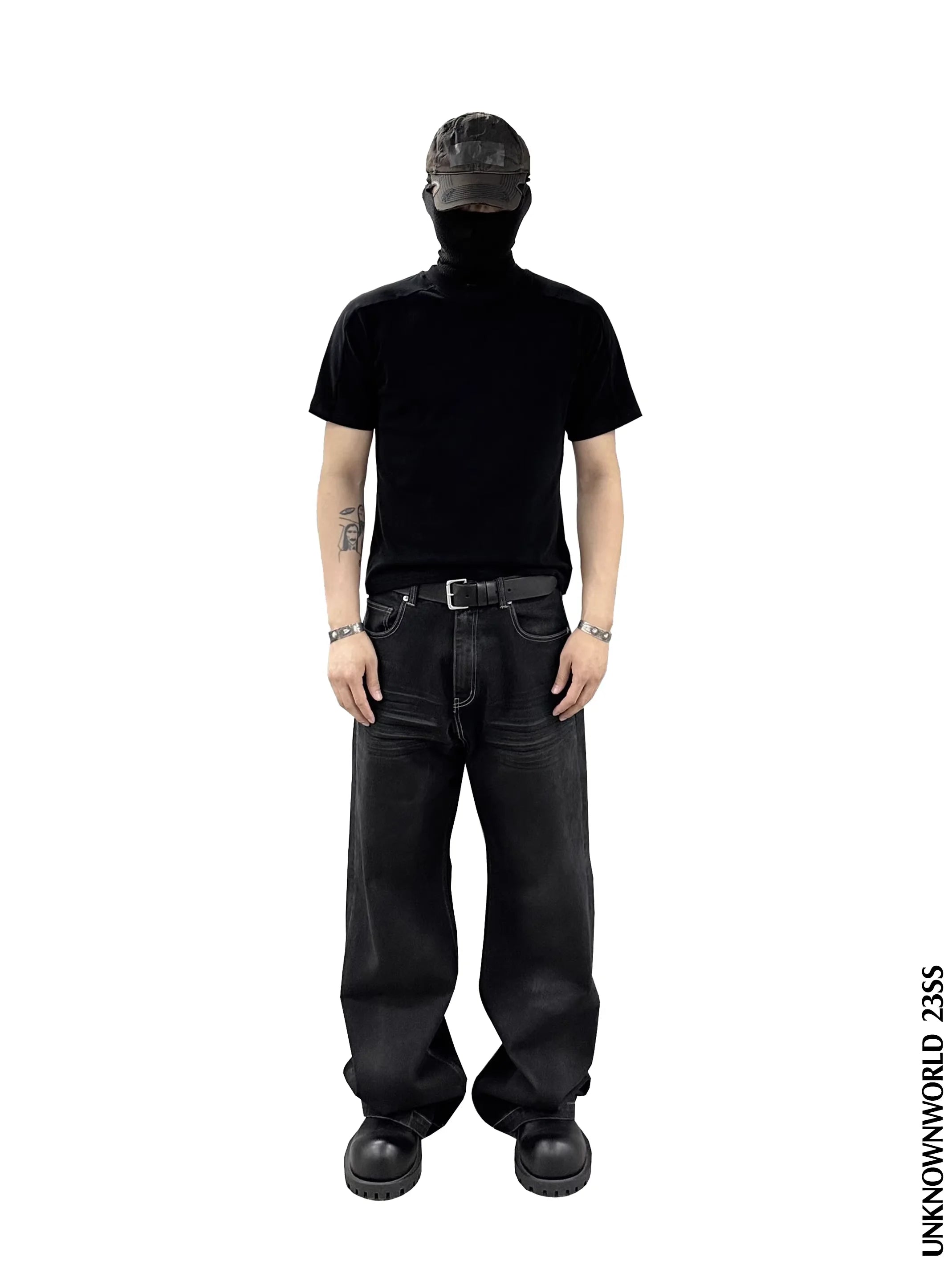 UNKNOWNWORLD Washed Black Wide-Leg Jeans