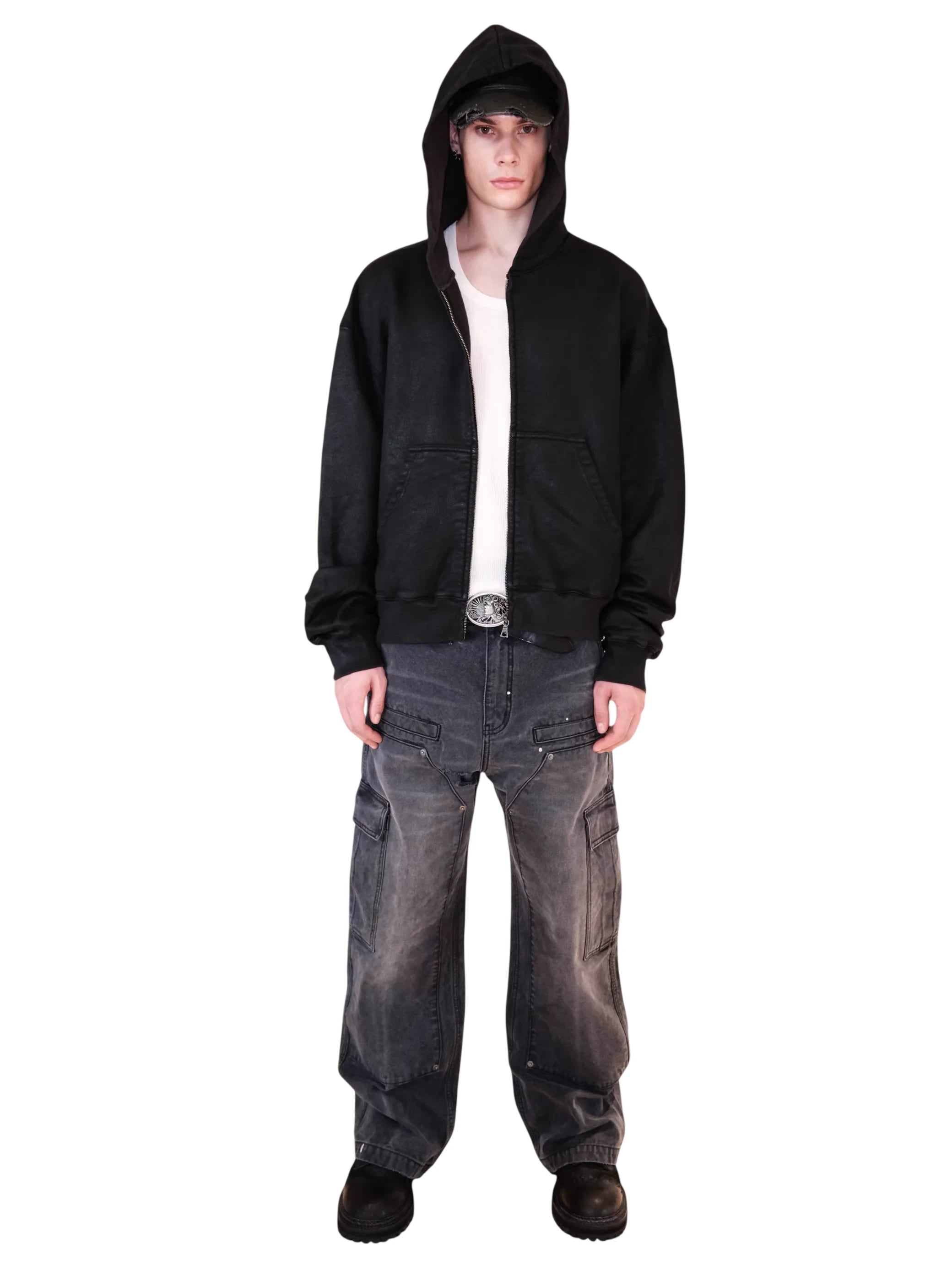 Distressed Gray Blue with Black Ribbing