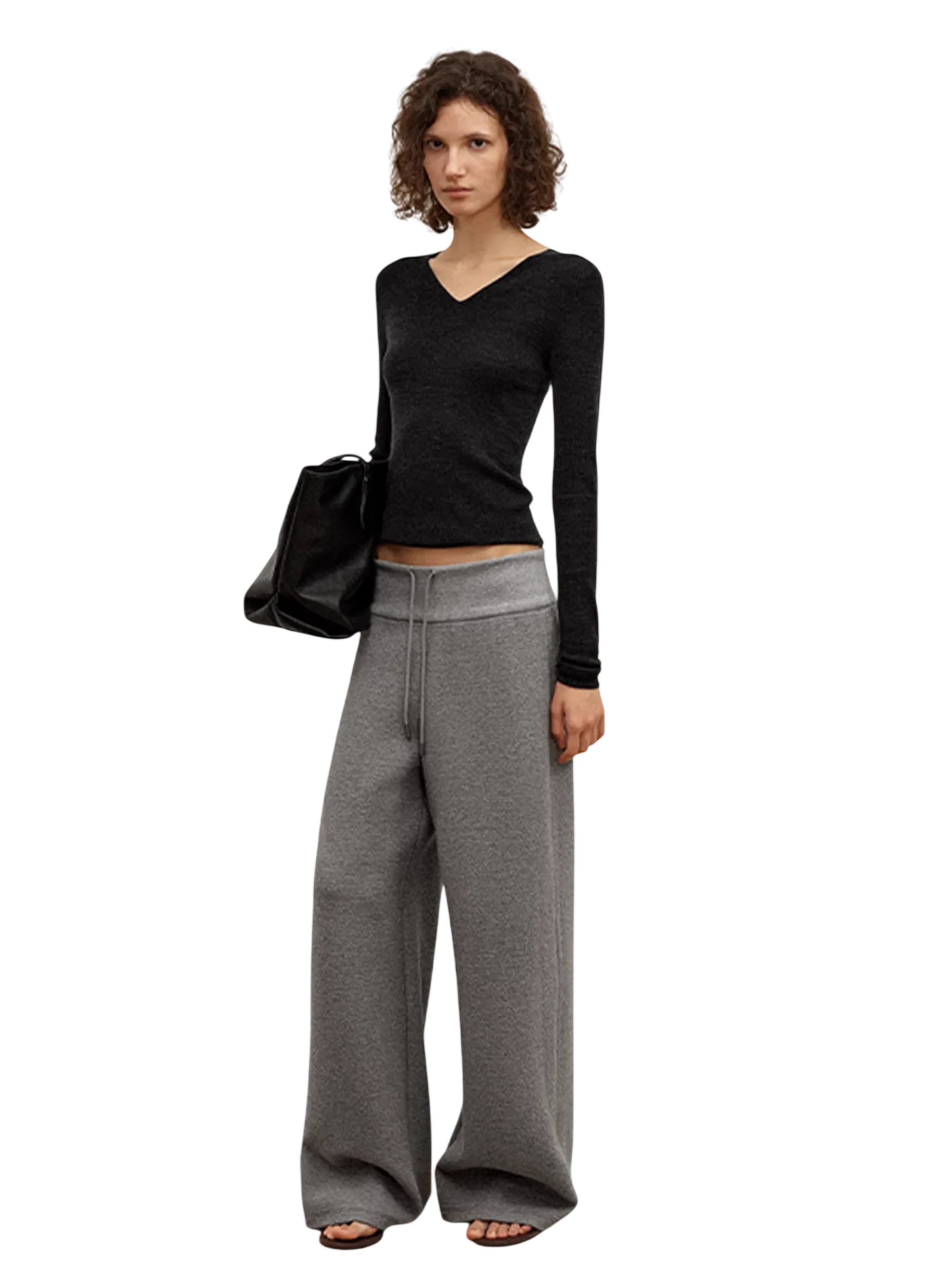 PUKI Women's Lace Waist Layered Wide-Leg Pants