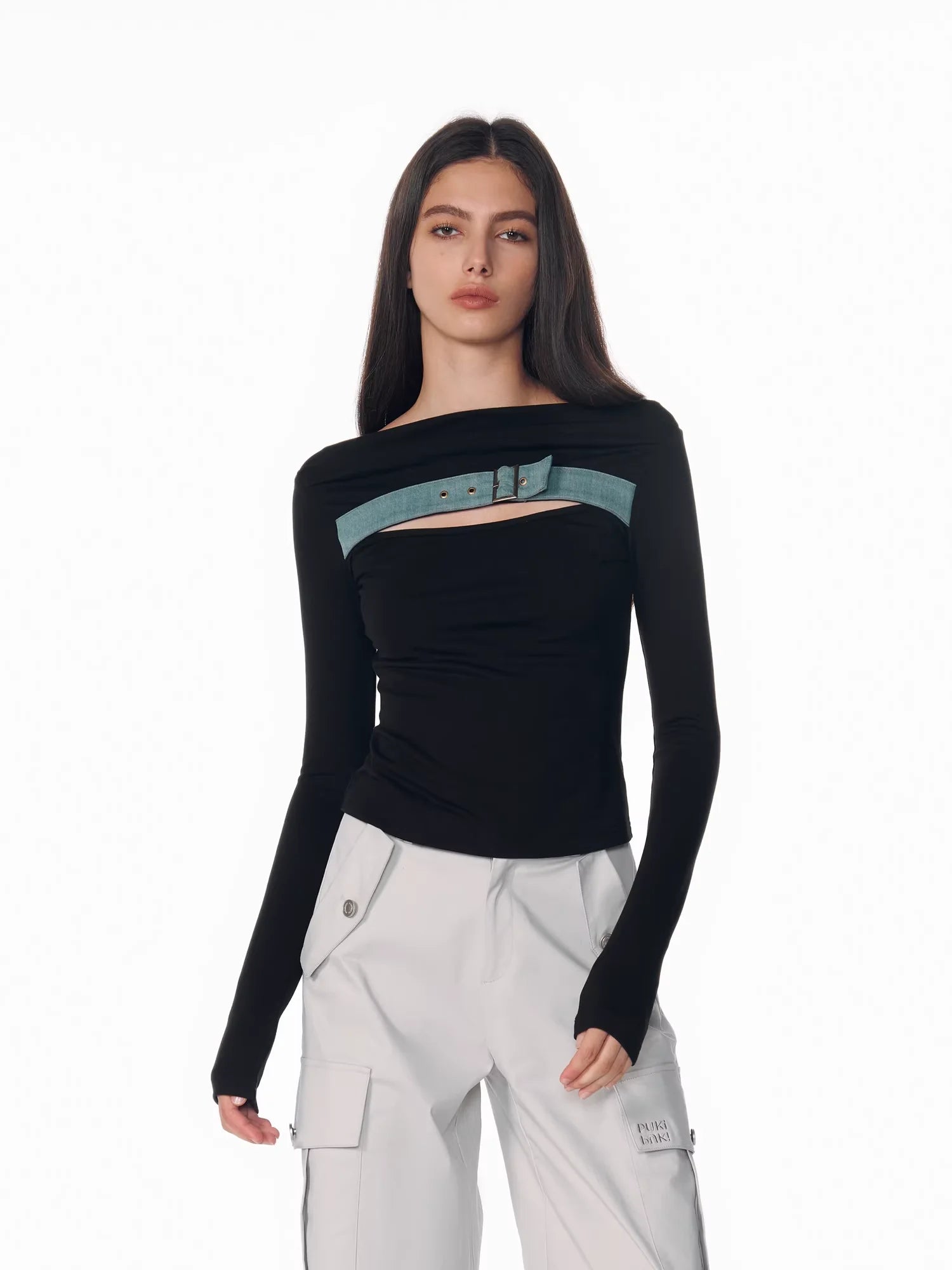 PUKI Wool-Blend Layered Colorblock Knit Cardigan