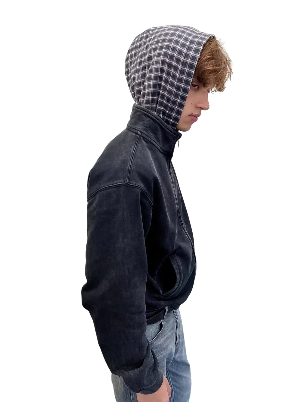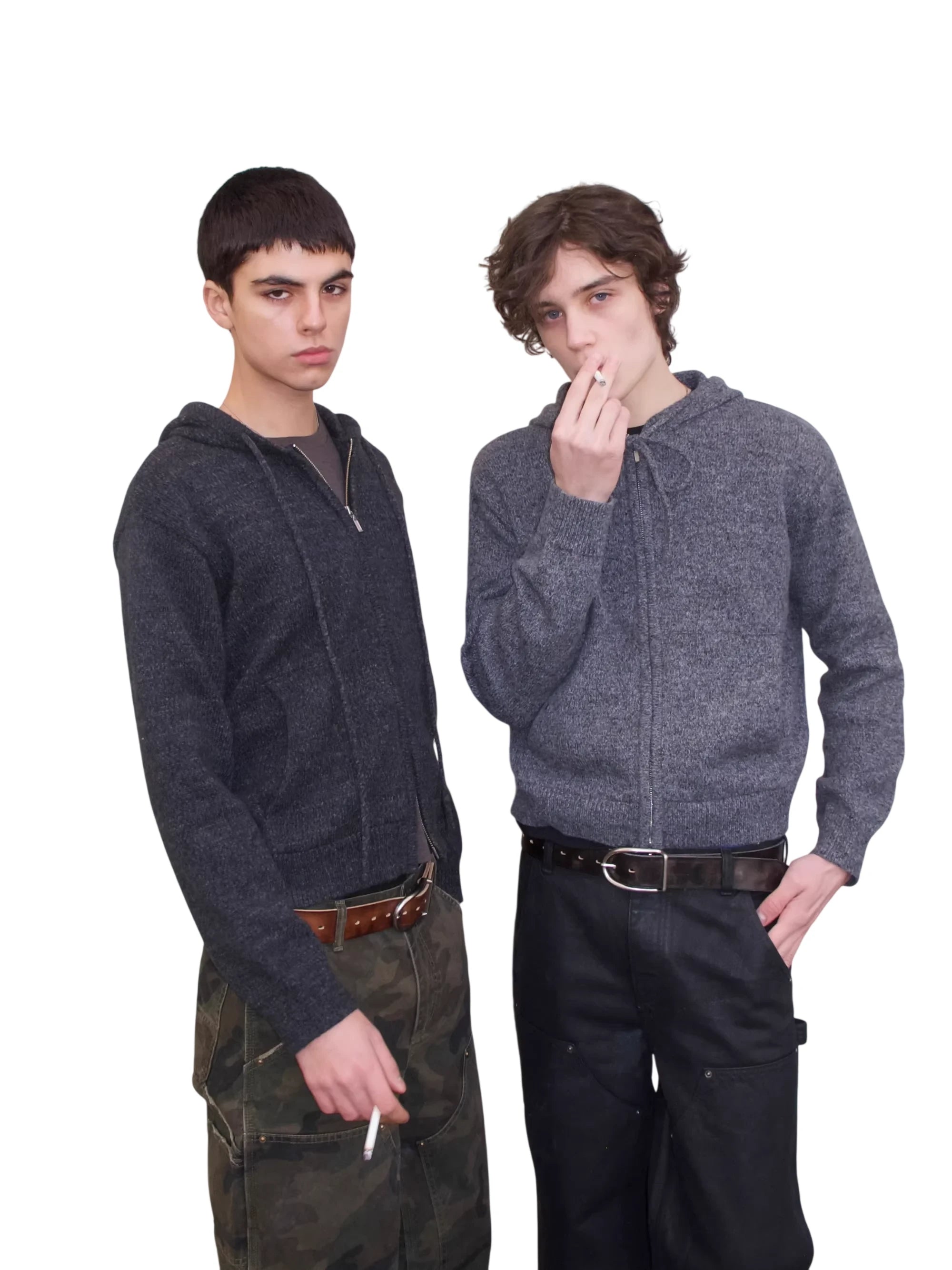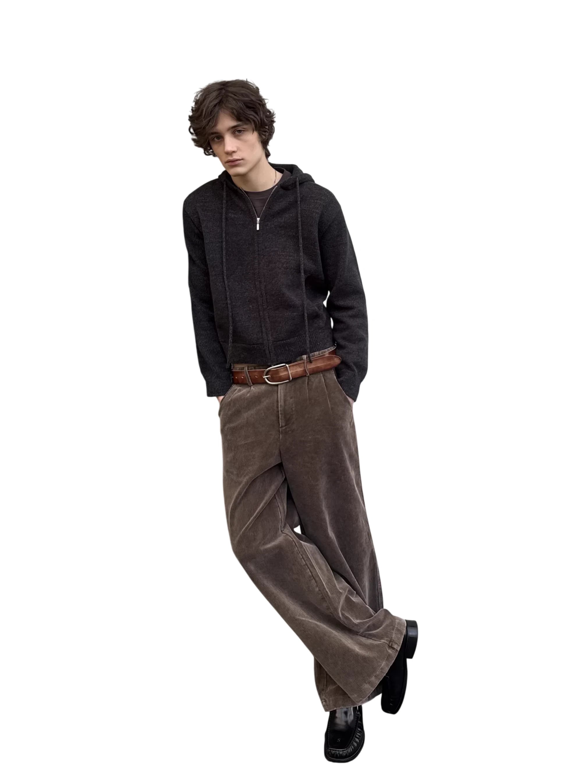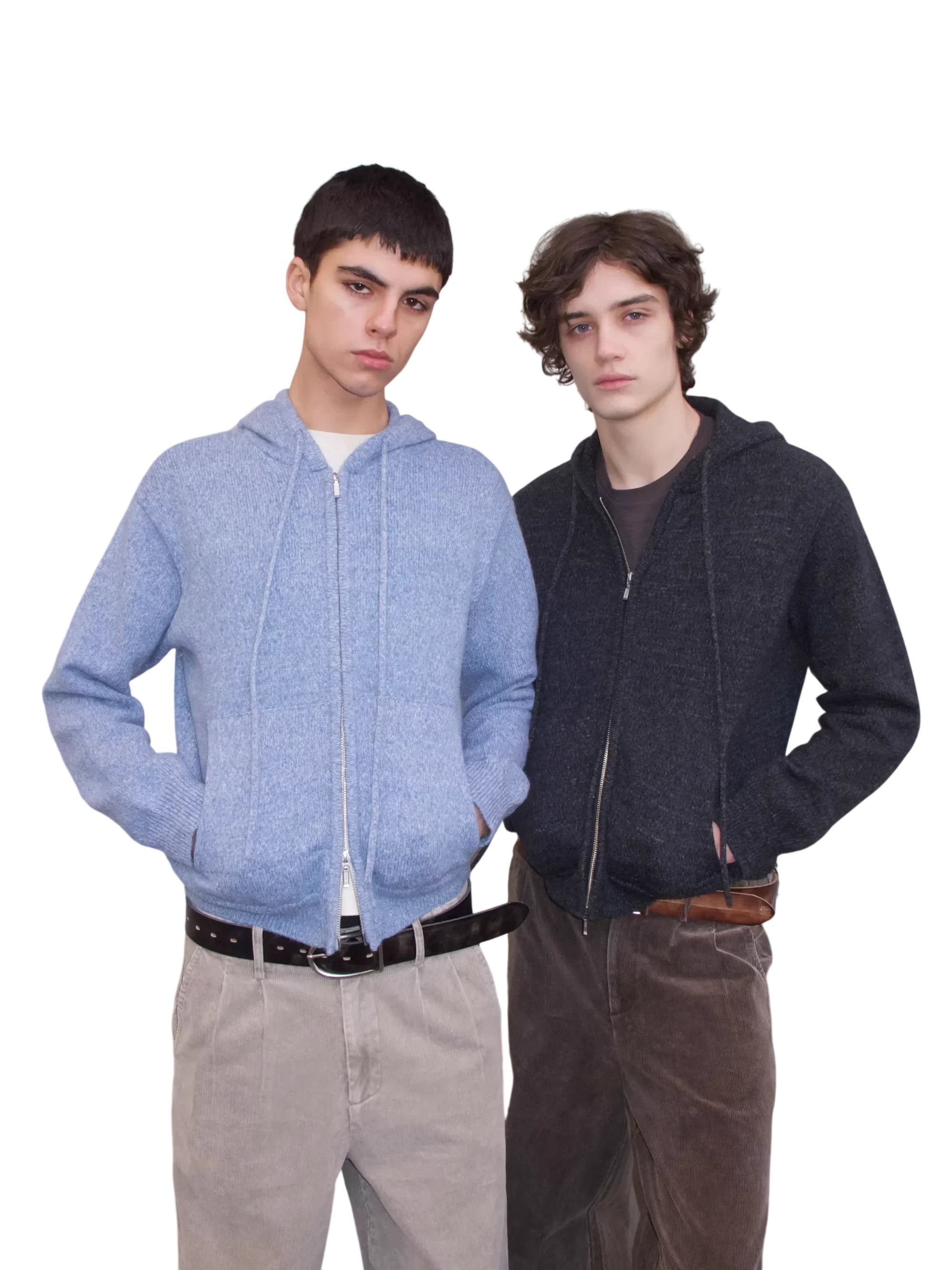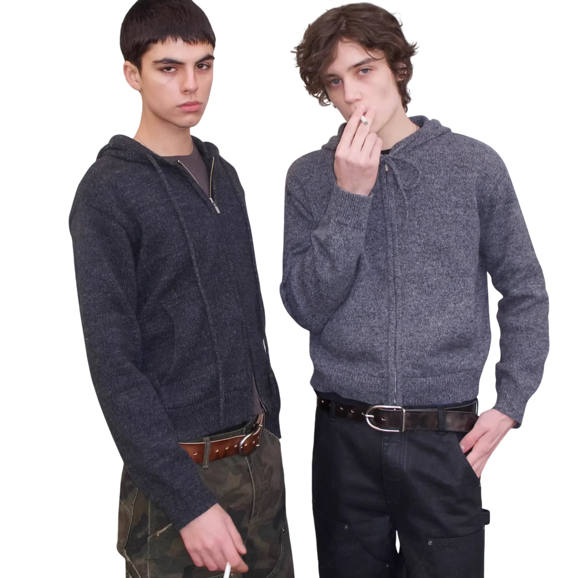 VLABMADE Men's Vintage Mélange Knit Hoodie with Double Zipper