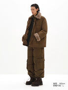 Stay warm and stylish in this oversized down parka designed for women. Featuring plush lamb wool lining at the collar and cuffs, it provides exceptional insulation for cold weather. The heavy-duty construction includes flap pockets, a concealed zip-up closure with button placket, and a utility-inspired chest D-ring. Perfect for outdoor work or rugged streetwear looks, this parka combines comfort, practicality, and modern style.