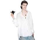 MASONPRINCE Oversized Linen Button-Up Shirt with Raw Hem and Sun Protection