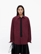 Elevate your casual wardrobe with this oversized plaid long sleeve shirt, designed for a relaxed yet stylish look. Featuring a classic red and black checkered pattern, this shirt offers a laid-back vibe with an old-school washed finish. A classic collar, button-up front, and chest pocket with a subtle logo patch provide essential details, while the included faux black necktie adds a trendy, androgynous touch. Perfect for autumn layering, this shirt is ideal for women who love mixing casual comfort with statement style. Pair it with a skirt or trousers for a complete look that stands out effortlessly.