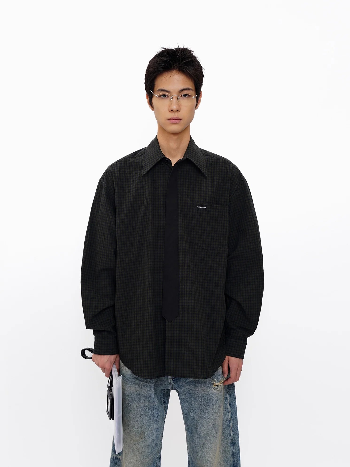 MASONPRINCE Oversized Plaid Long Sleeve Shirt with Faux Tie