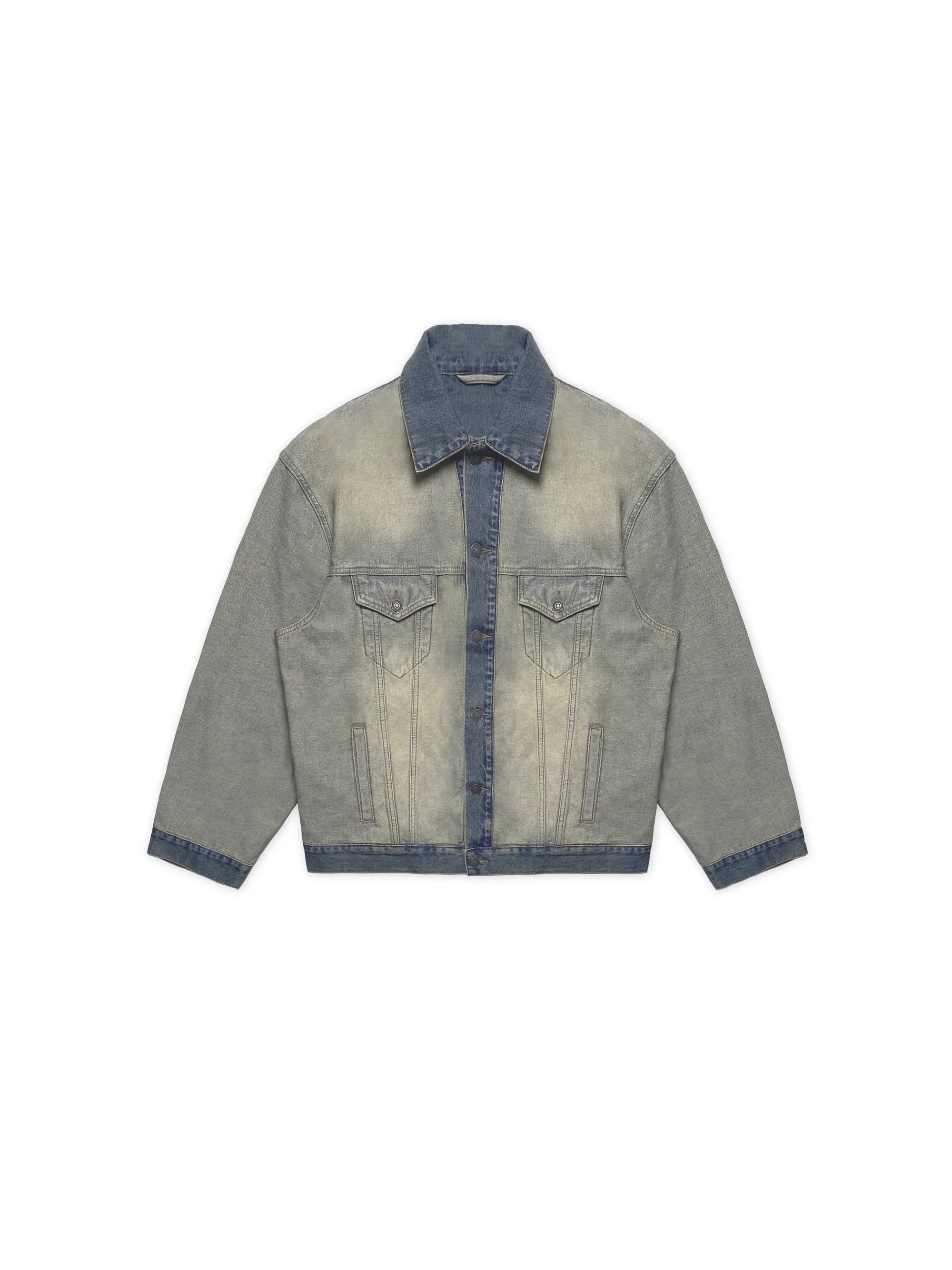 MASONPRINCE Oversized Washed Denim Jacket with Reverse Hem Detail