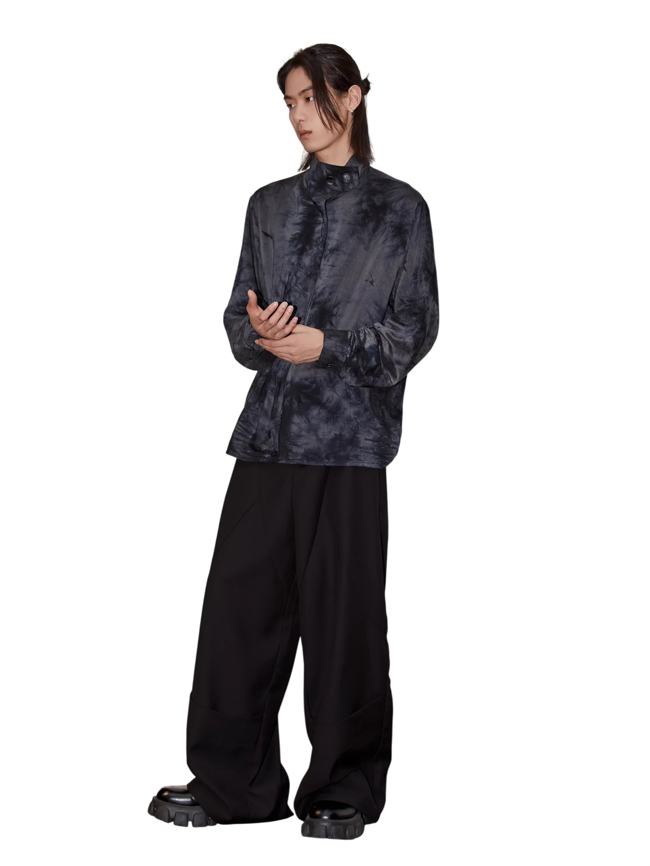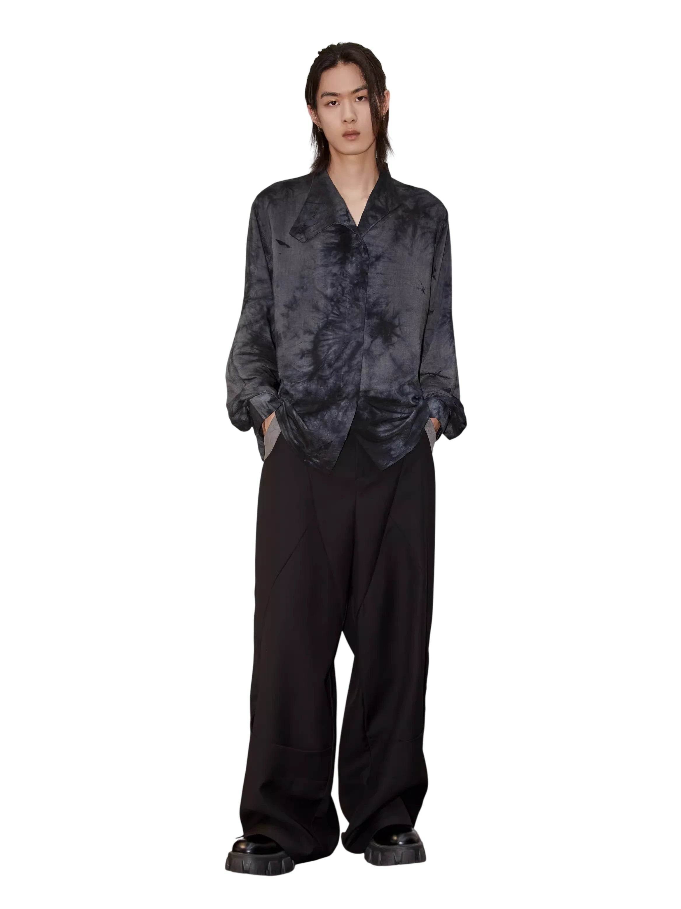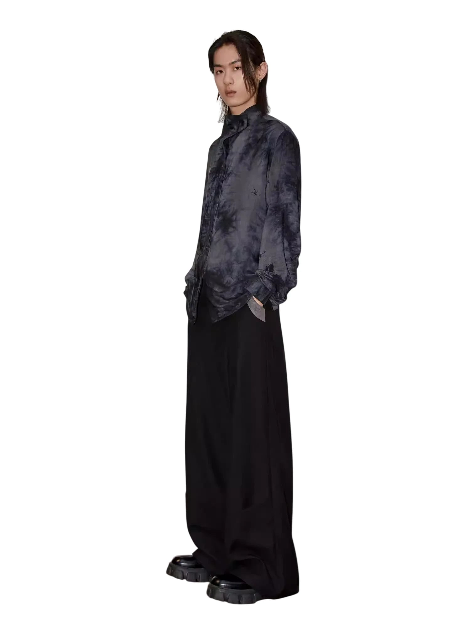 These men's wide-leg casual trousers are crafted from heavyweight TR fabric, offering breathability, smooth texture, and wrinkle resistance. Designed with a high-waisted fit and a tailored three-dimensional silhouette, they feature seam detailing and split construction for a modern touch. Perfect for elevating everyday ensembles with relaxed sophistication.