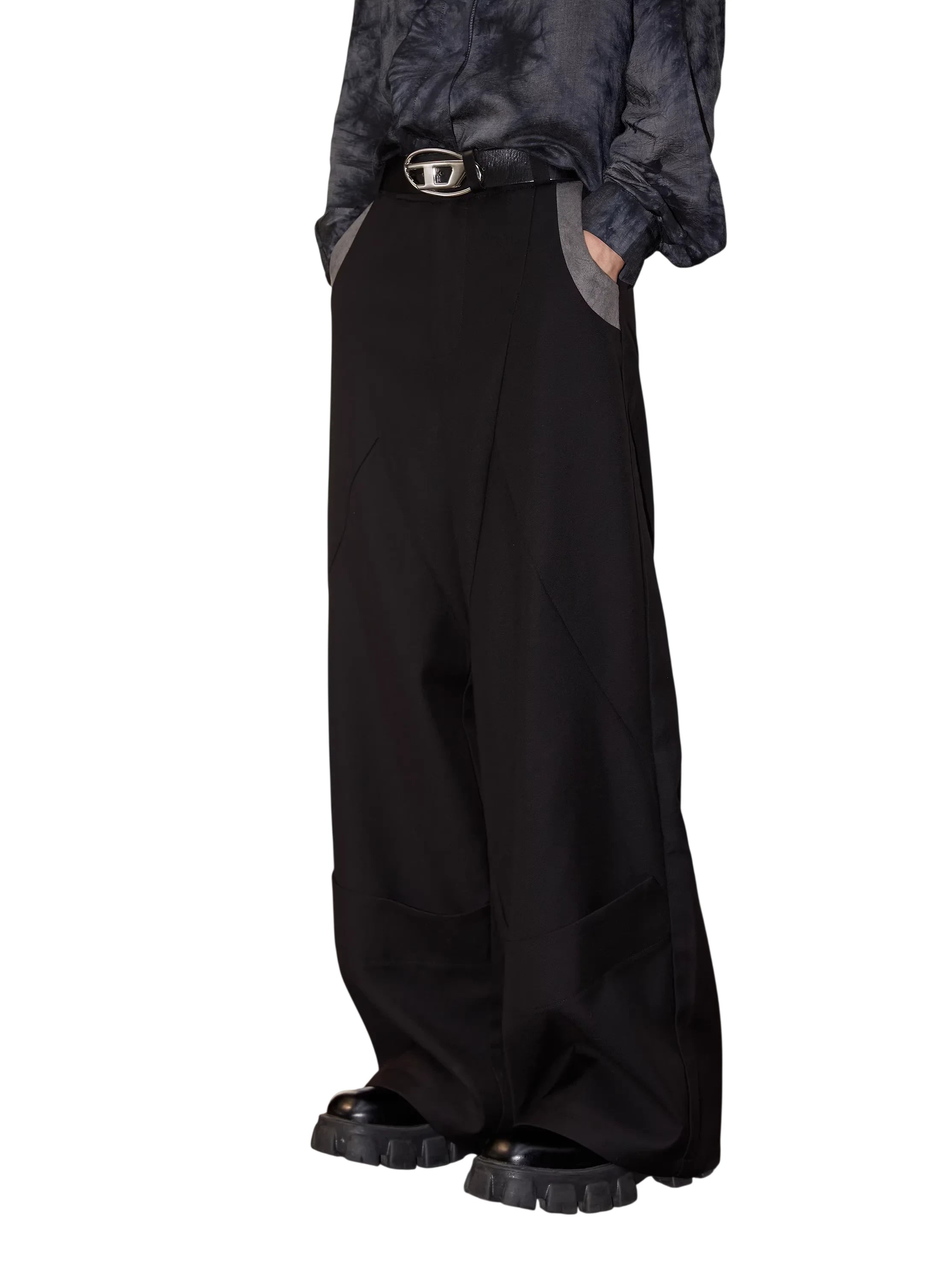 Y OFFICIAL Men's Wrinkle-Resistant TR Fabric Wide-Leg Trousers