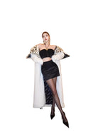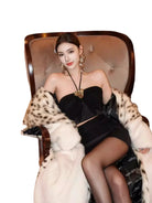 Make a bold style statement with this elegant women's Bow Mesh Halter Tube Top and Skirt Set. Designed with a strapless halter neckline, the top features a striking metal flower brooch that adds an eye-catching touch of glamour. The matching skirt complements the look, making it perfect for birthdays, vacations, special events, or photoshoots. Whether you're posing in luxury or stepping out for a celebration, this refined ensemble enhances your sophisticated charm.