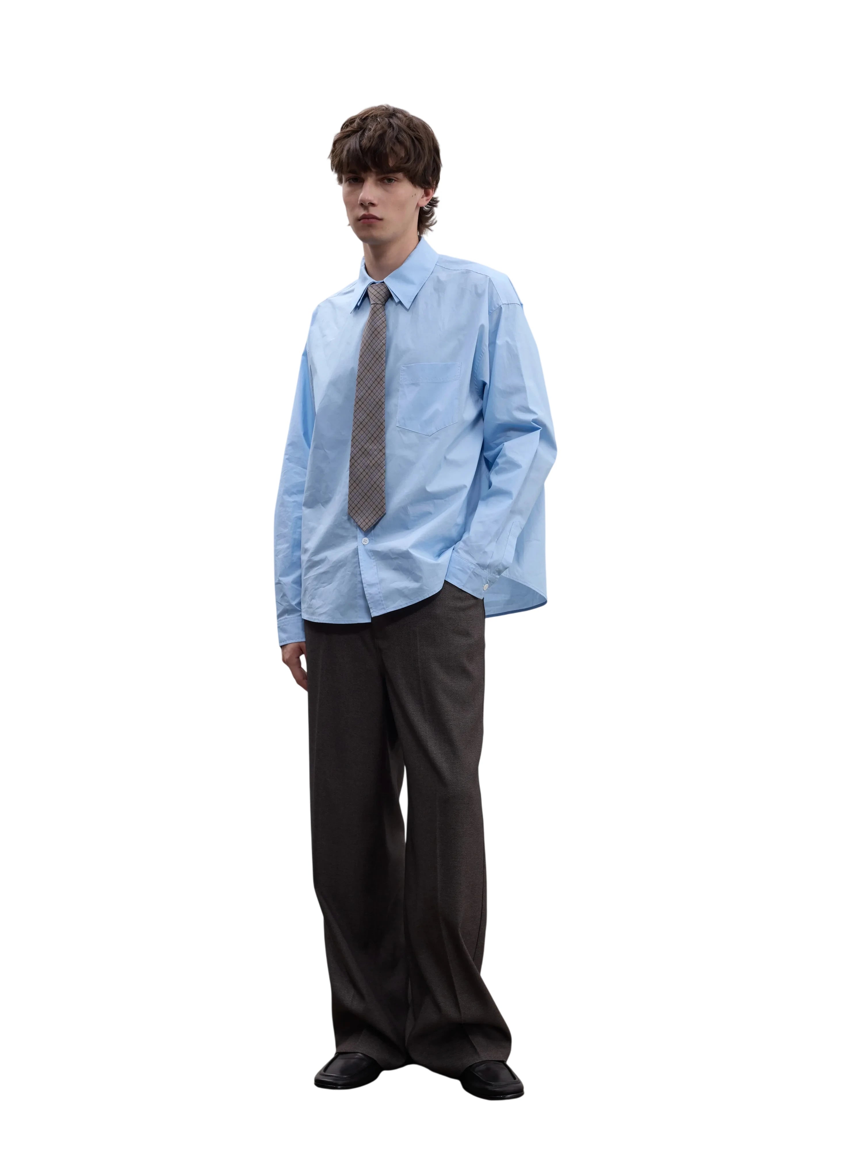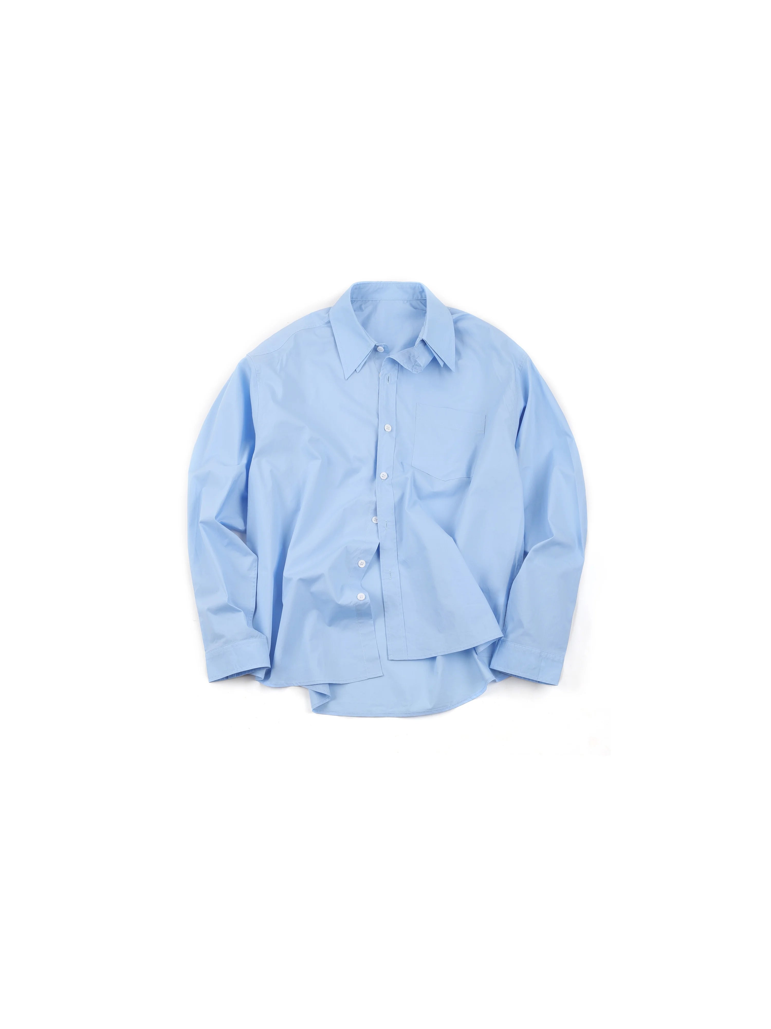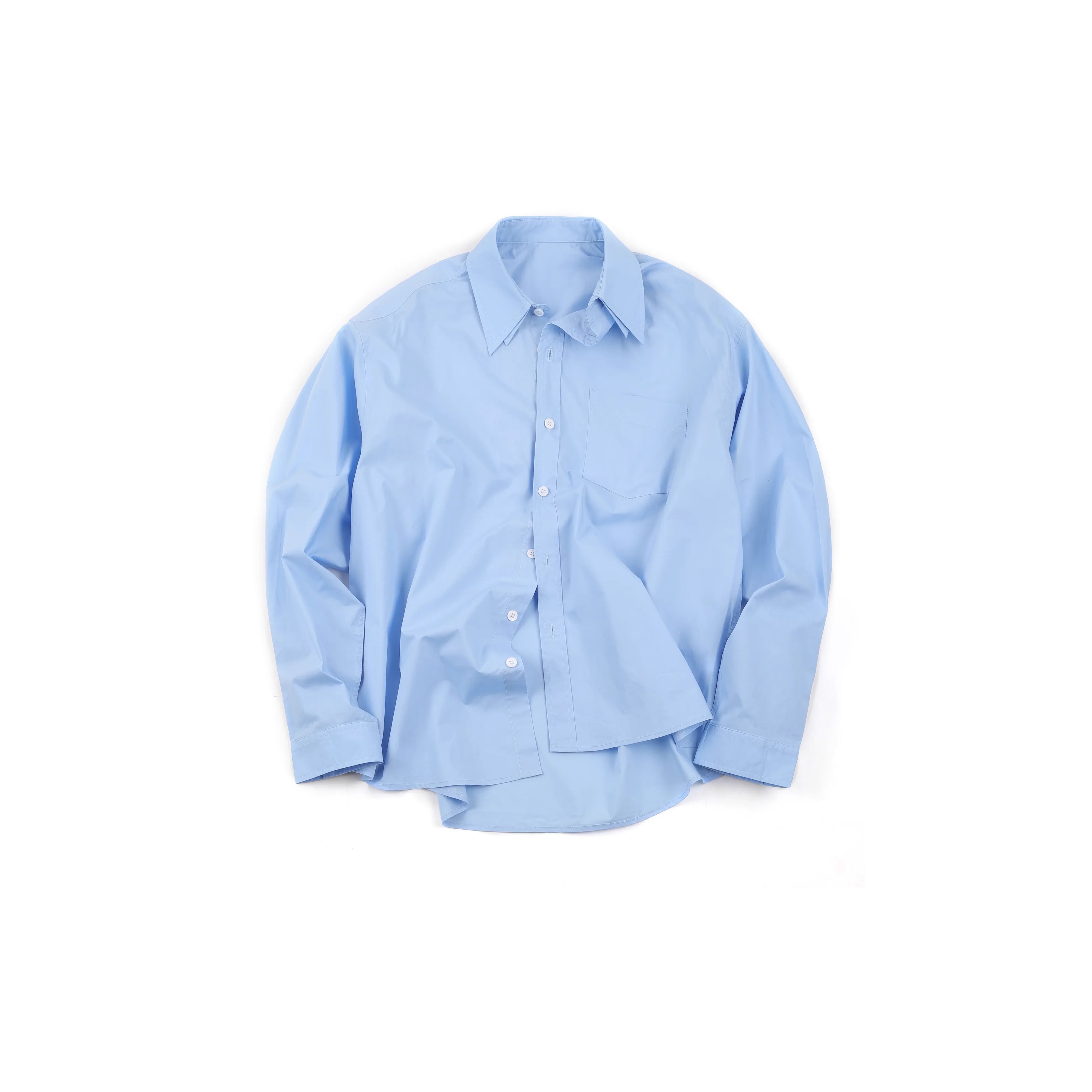 This men's baby blue shirt features a comfortable loose fit and is crafted from soft, crisp cotton. Designed with a classic pointed collar and complemented by clean white buttons, it brings a fresh, polished look to your wardrobe. The long sleeves and standard left chest pocket add timeless functionality. Ideal for casual or semi-formal wear, this shirt offers both style and comfort.