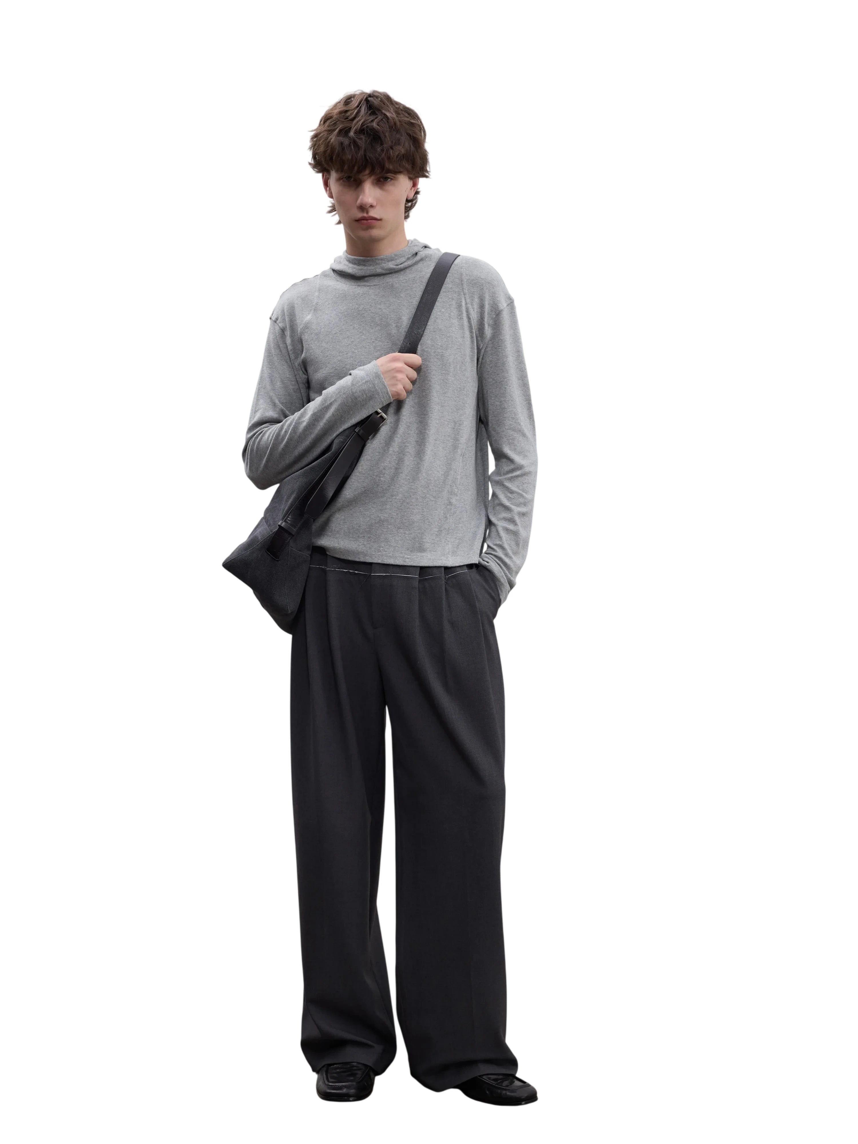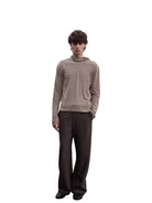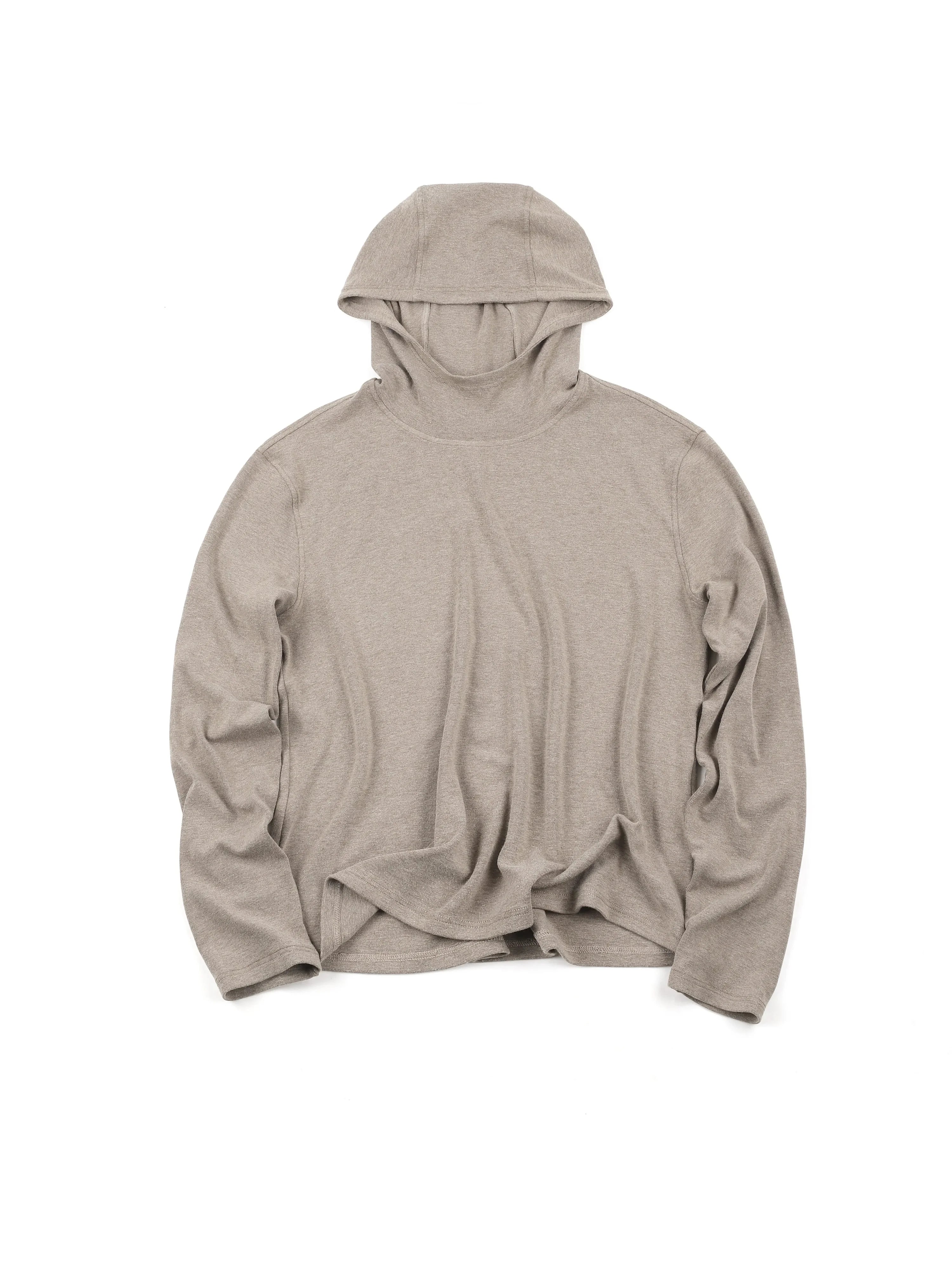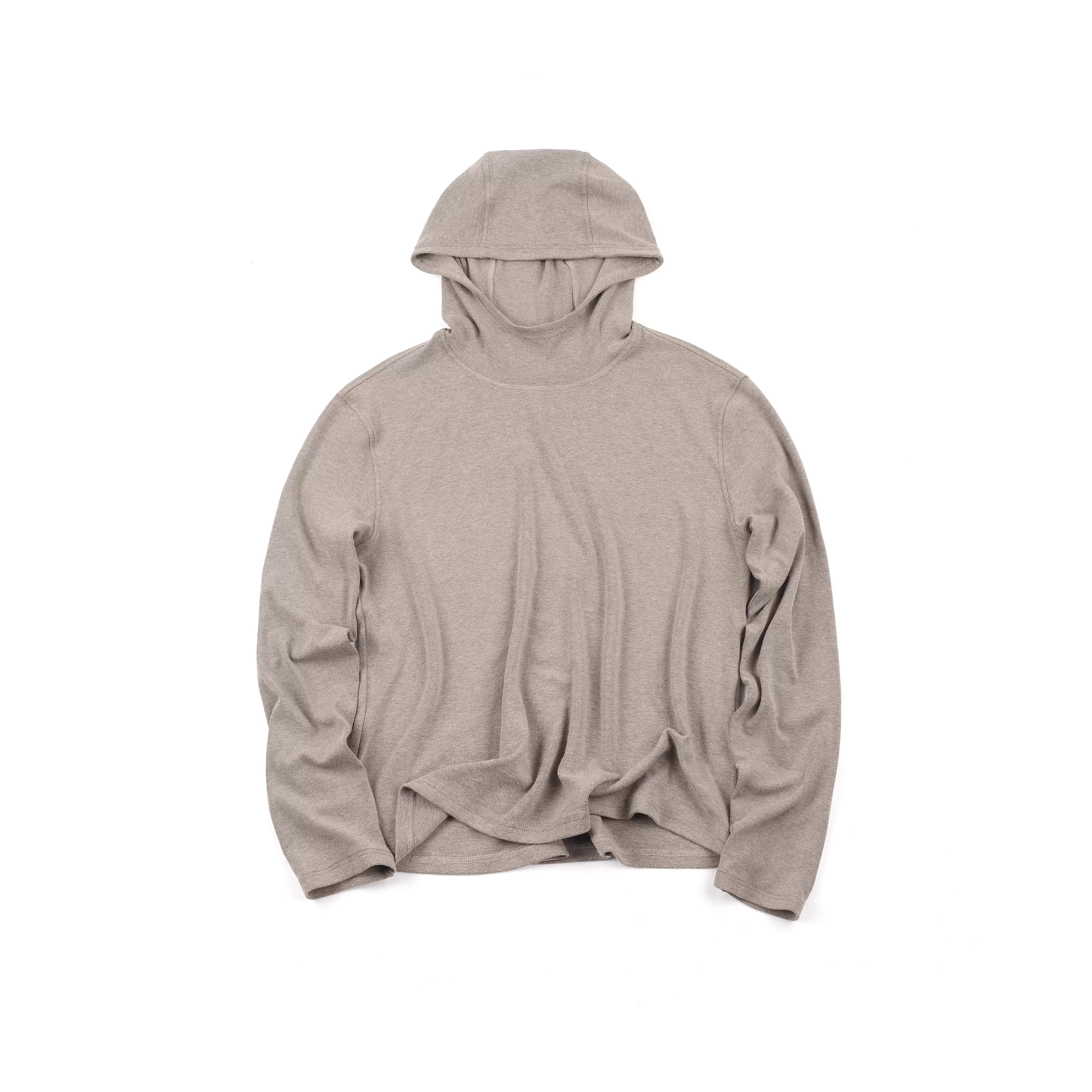 Stay comfortable and stylish with this men's long sleeve hooded T-shirt crafted from a soft wool blend. Featuring a slim fit and minimalist design, it comes in a muted beige or light taupe shade that adds a modern, neutral touch to any outfit. The hooded style is designed without drawstrings or pockets, creating a clean and streamlined silhouette ideal for everyday wear. Perfect for layering or wearing on its own during cooler weather.