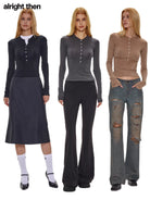 Styled in three versatile shades — navy blue, charcoal grey, and mocha brown — this piece offers endless wardrobe possibilities. Whether layered for a preppy look, paired with tailored trousers for a refined aesthetic, or worn casually with denim, this women's top adapts effortlessly to your personal style. Thumbhole detailing on select colors adds a modern, practical touch.