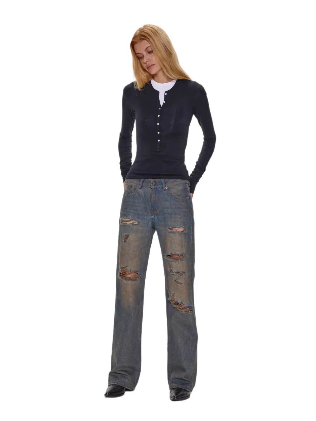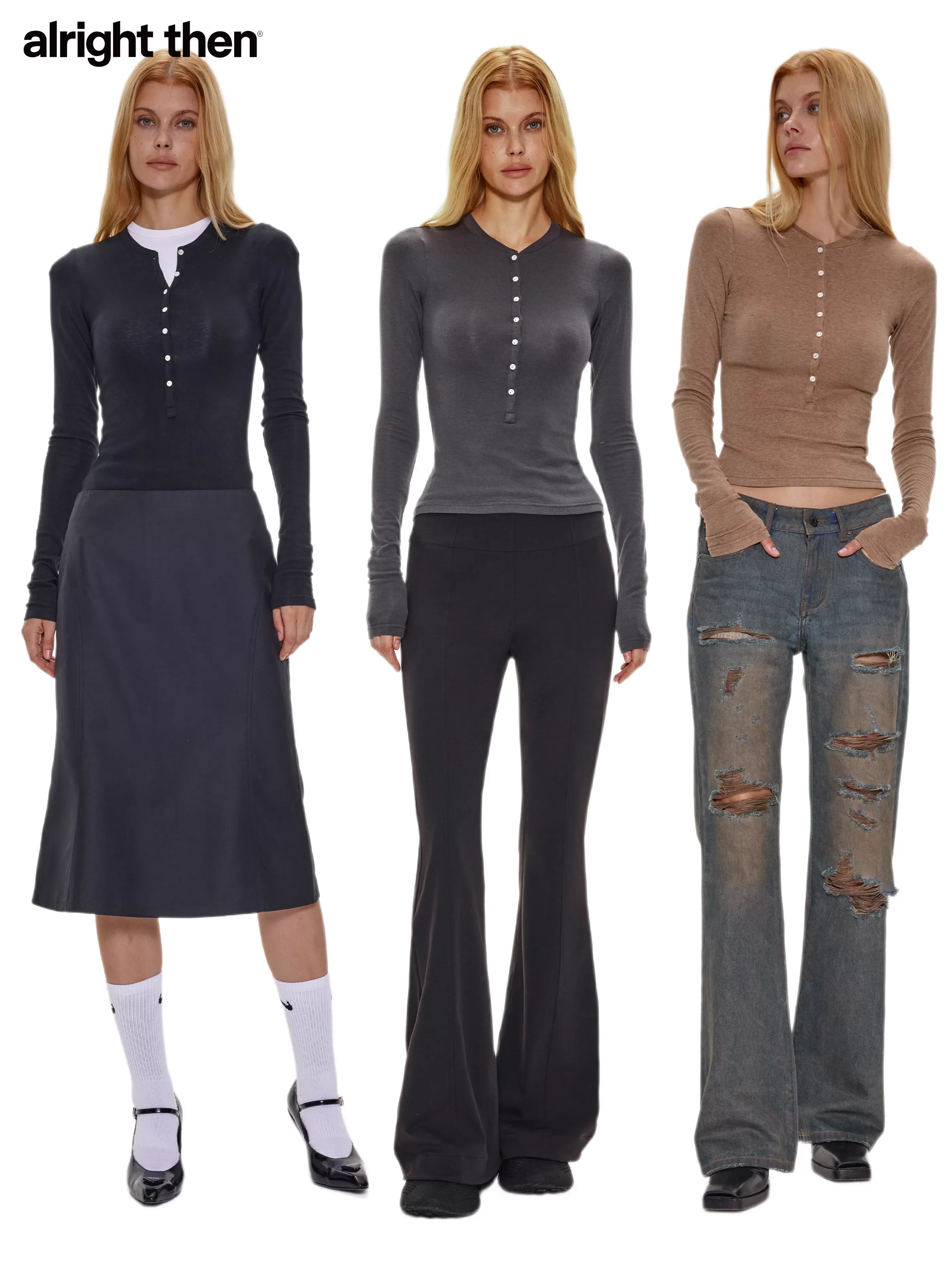 alright then Slim Wool Henley Long Sleeve Shirt with Shell Buttons