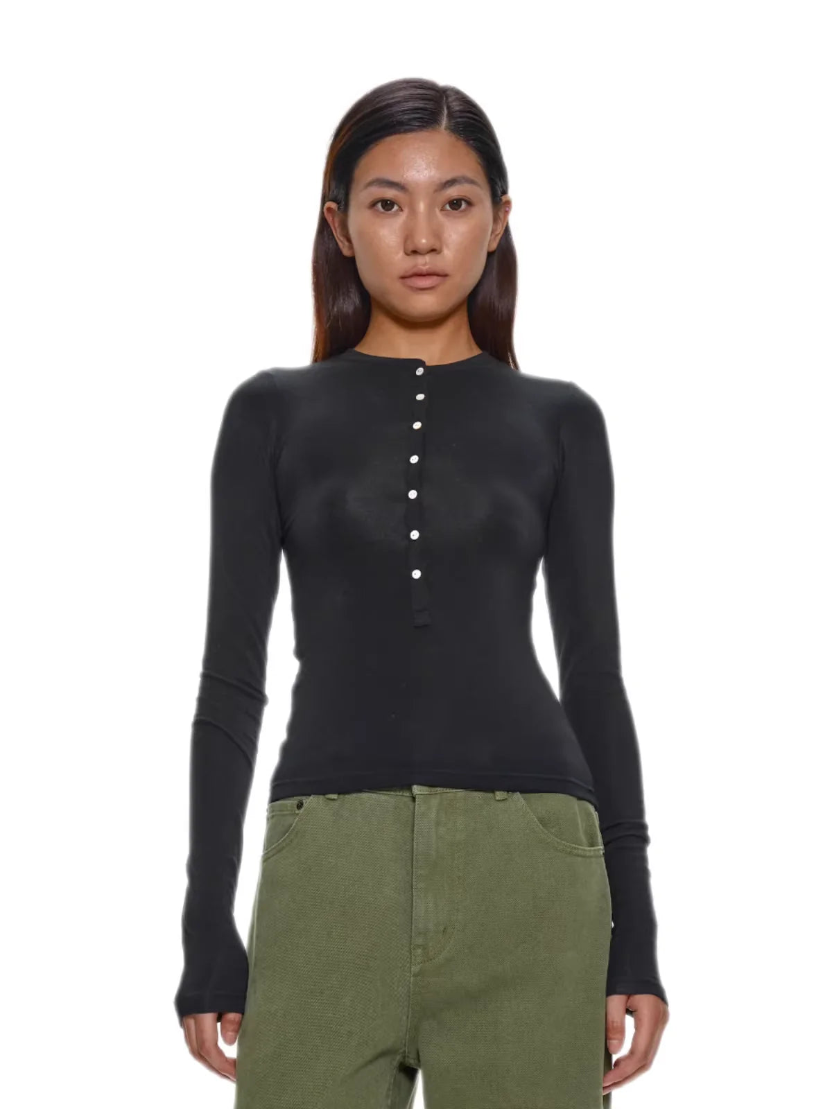 Elevate your essentials with this slim-fit wool Henley shirt, designed with lightweight knit fabric for year-round comfort. Featuring a flattering silhouette and signature shell buttons down the front, this long sleeve top blends functionality with elegance.