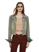 Amee Vintage Washed Cropped Denim Jacket for Women