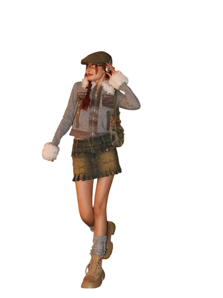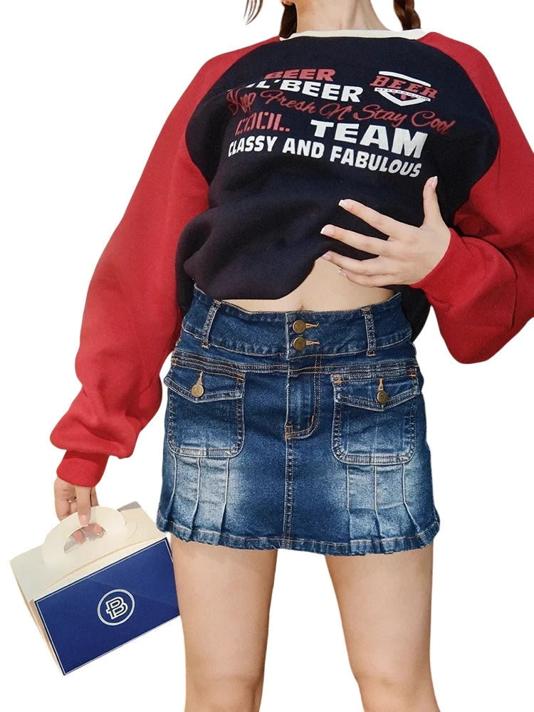 Elevate your autumn wardrobe with this stylish women's denim mini skirt. Crafted in a vintage-inspired American street style, it features a flattering bodycon fit, a double button closure, and a comfortable waistband with belt loops.