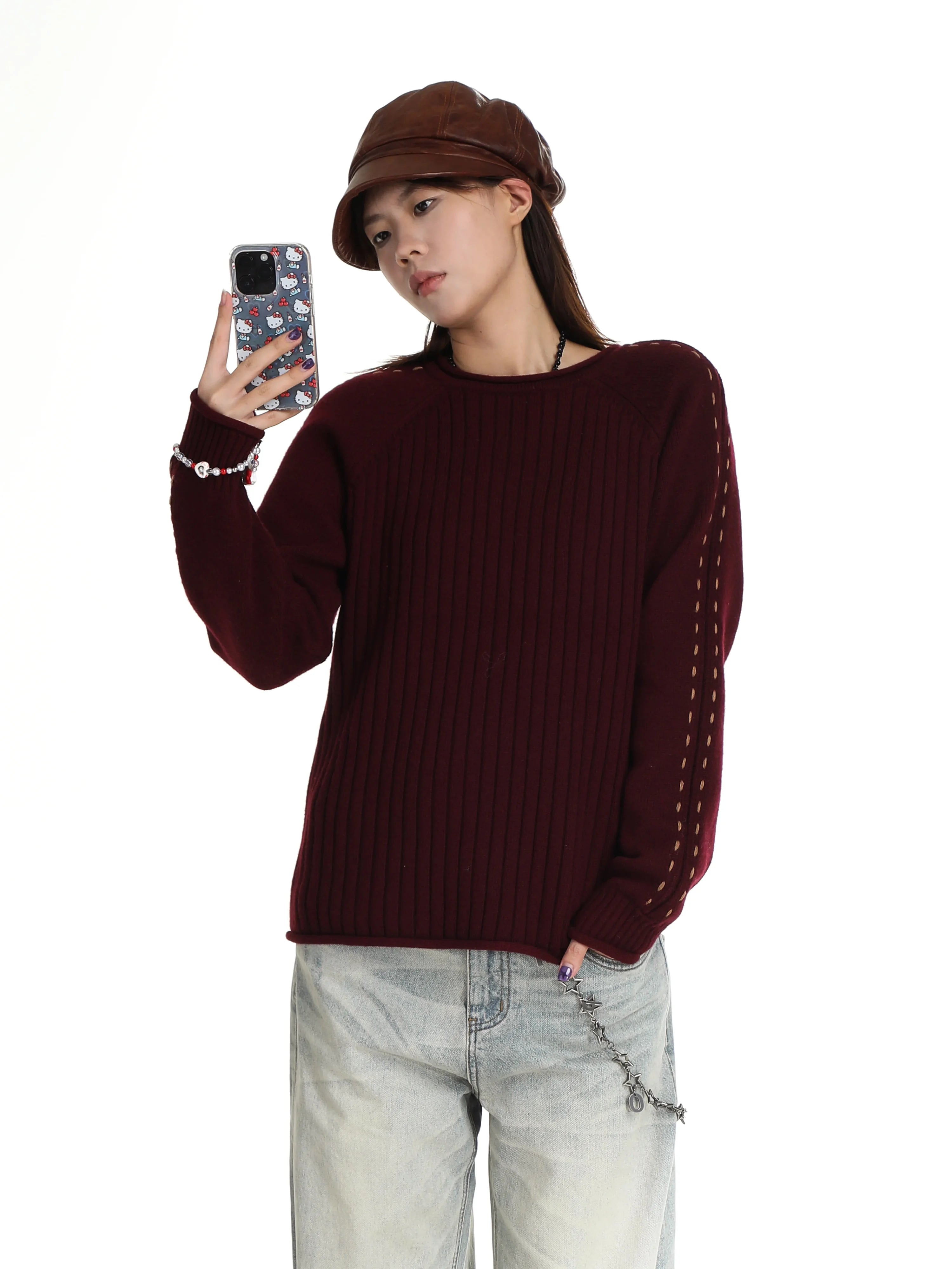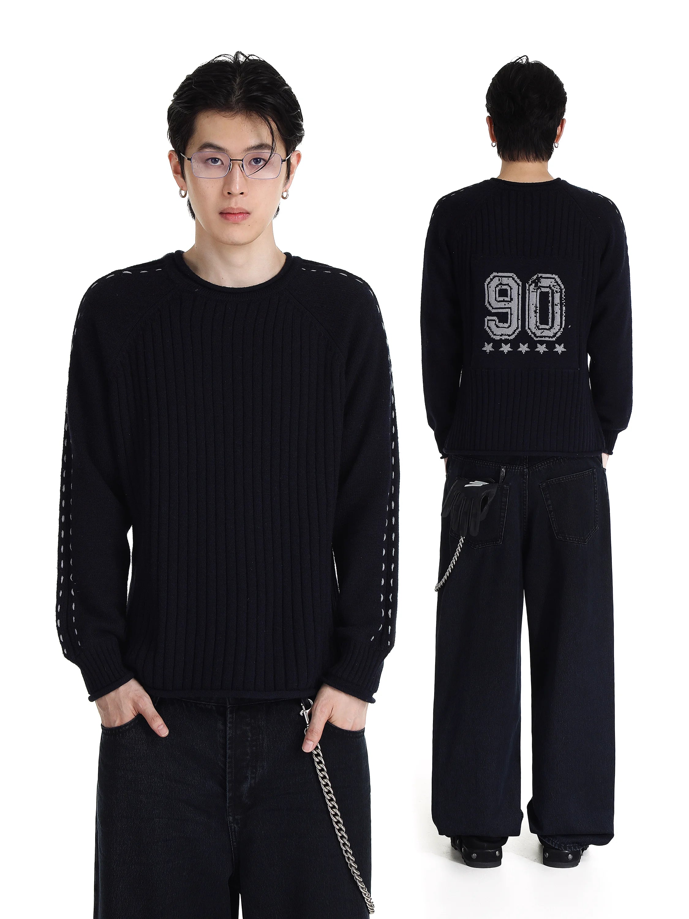 MASONPRINCE 90 Patch Ribbed Crew Neck Sweater