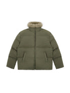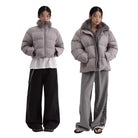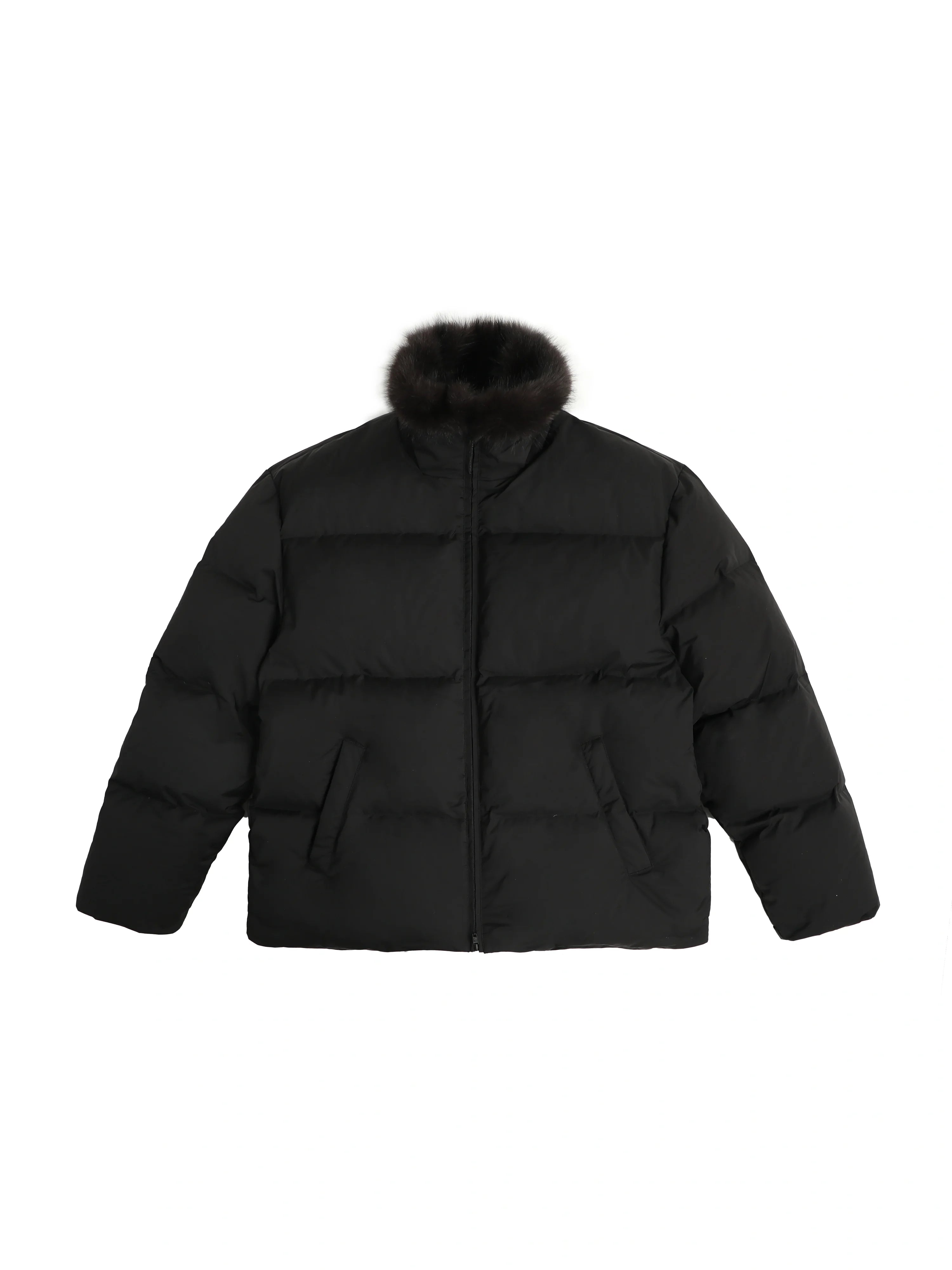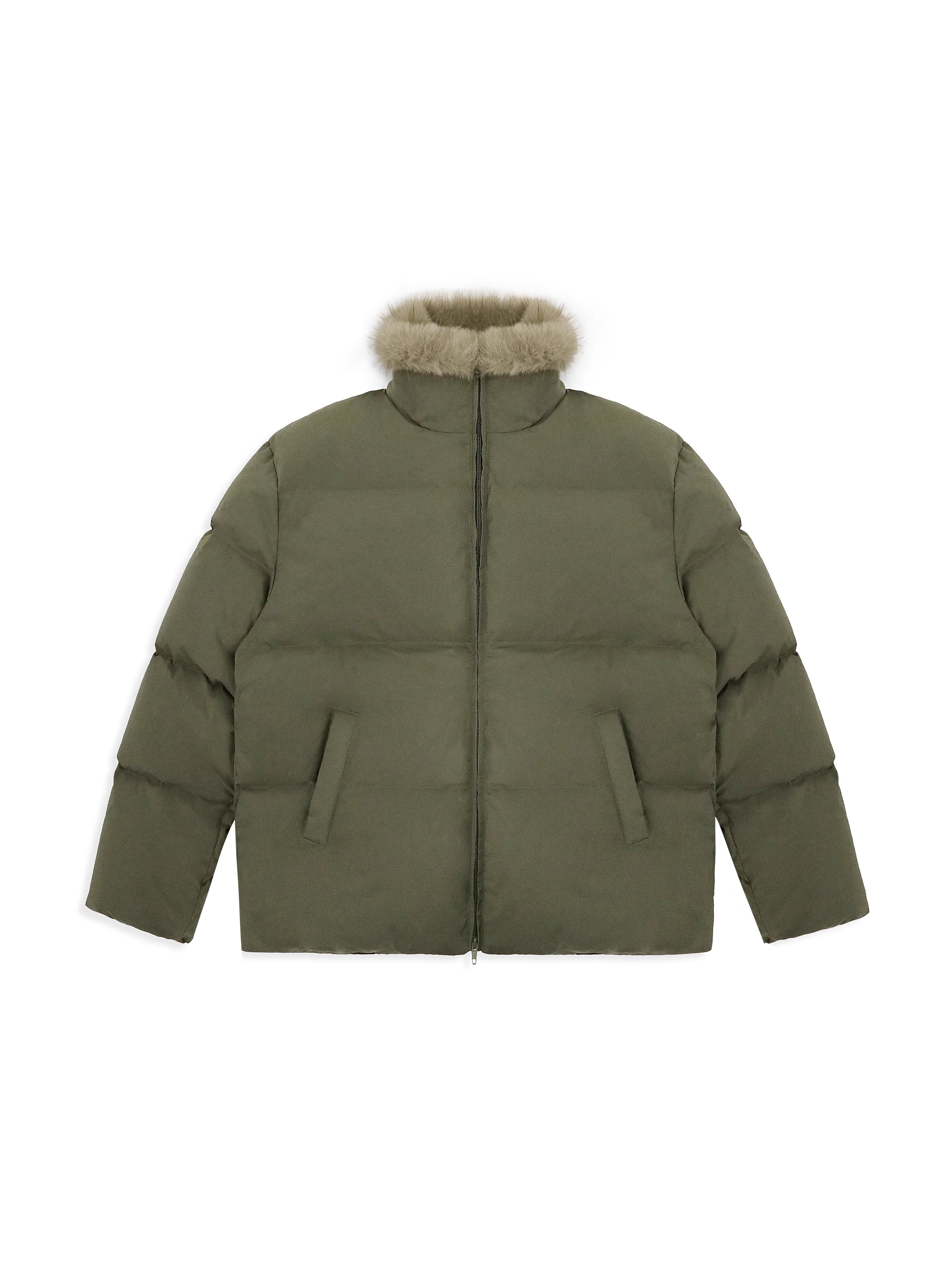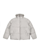 Its voluminous quilted construction offers a cozy and modern silhouette. The jacket includes a durable front zipper and practical side pockets. The design blends fashion and function, making it suitable for both casual and urban wear during colder months.