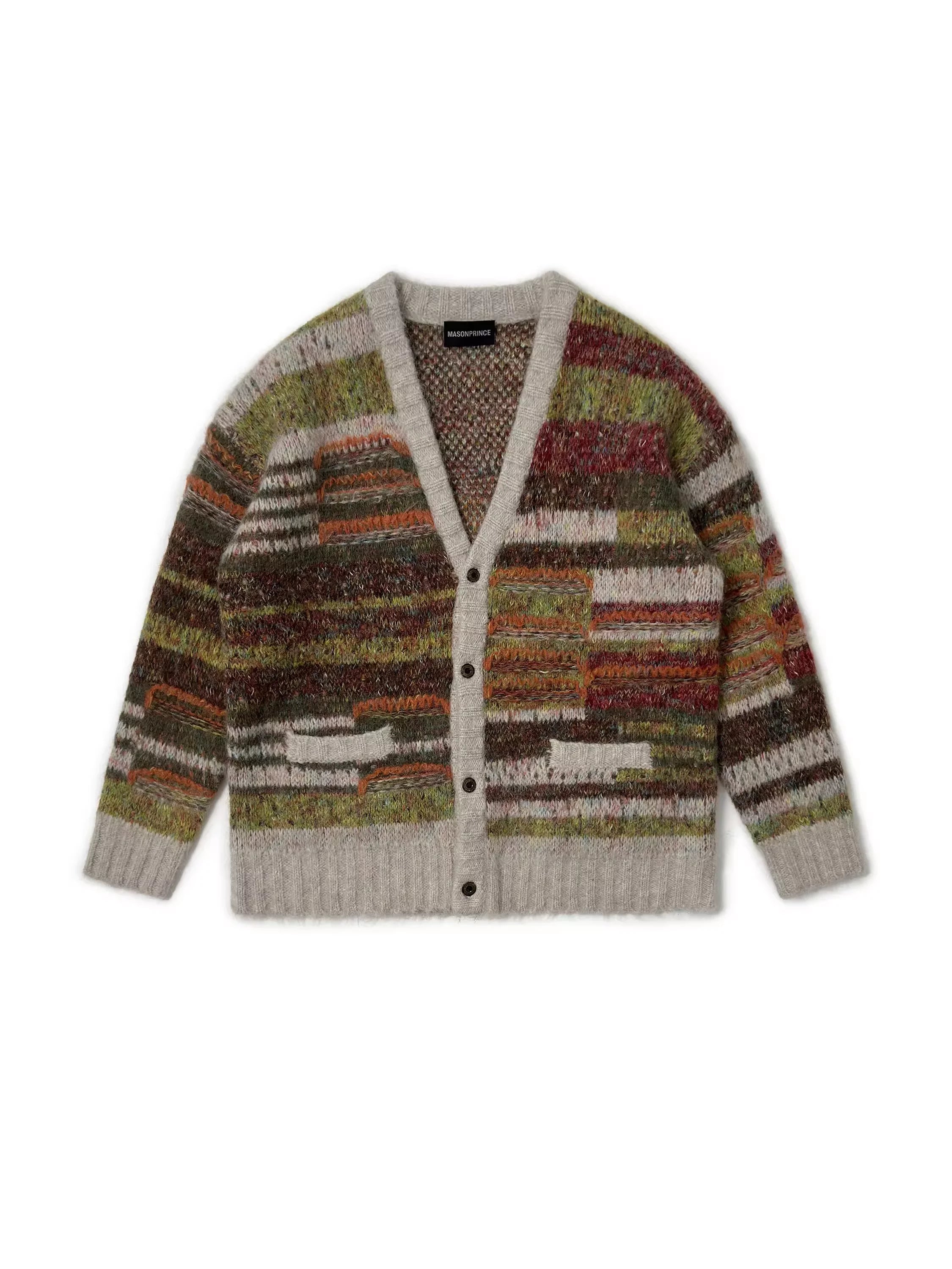 MASONPRINCE Colorblock Mixed Yarn Knit Cardigan