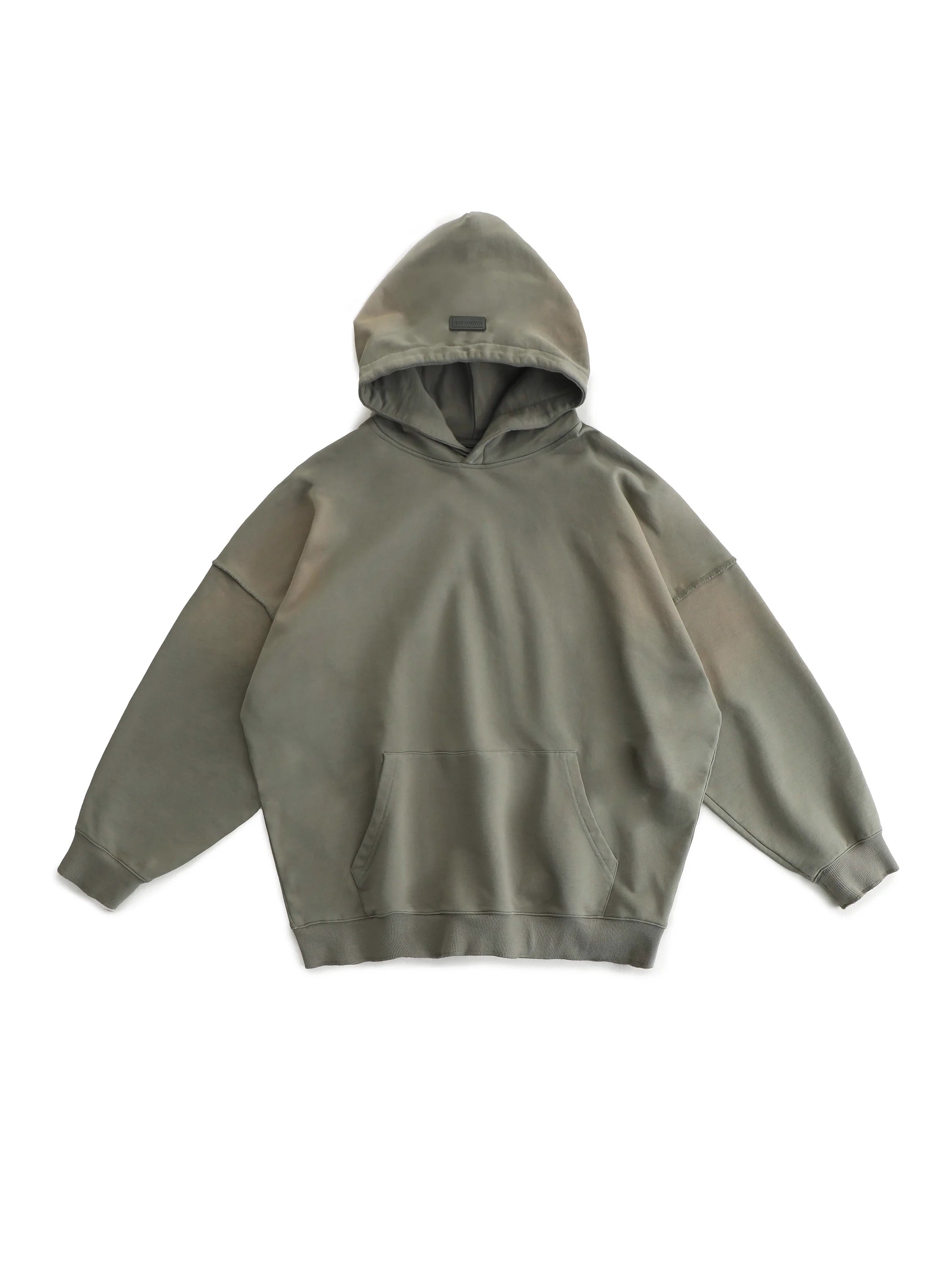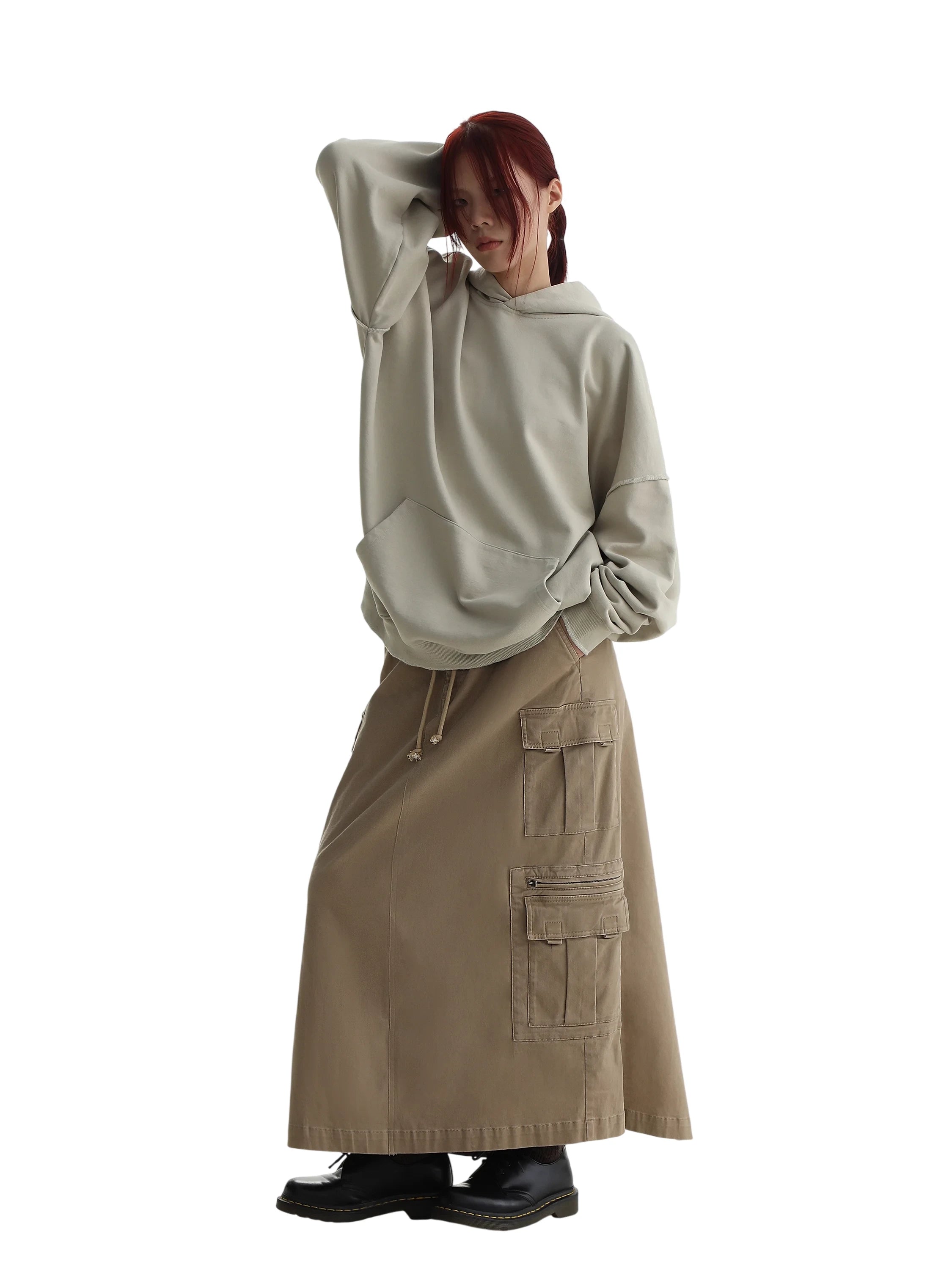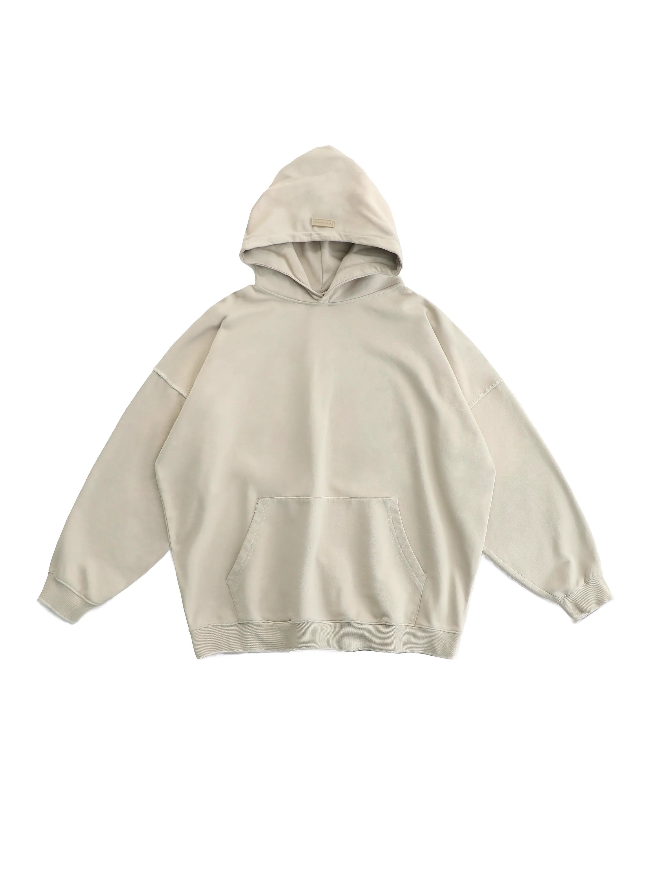 This women's cotton sweatshirt features a school uniform-inspired design with a subtle rubber patch detail. Designed for autumn wear, the light beige hoodie offers a relaxed fit, combining comfort and minimalistic streetwear elements. Its versatile style pairs effortlessly with high-waisted skirts or utility pants for a casual yet polished look.