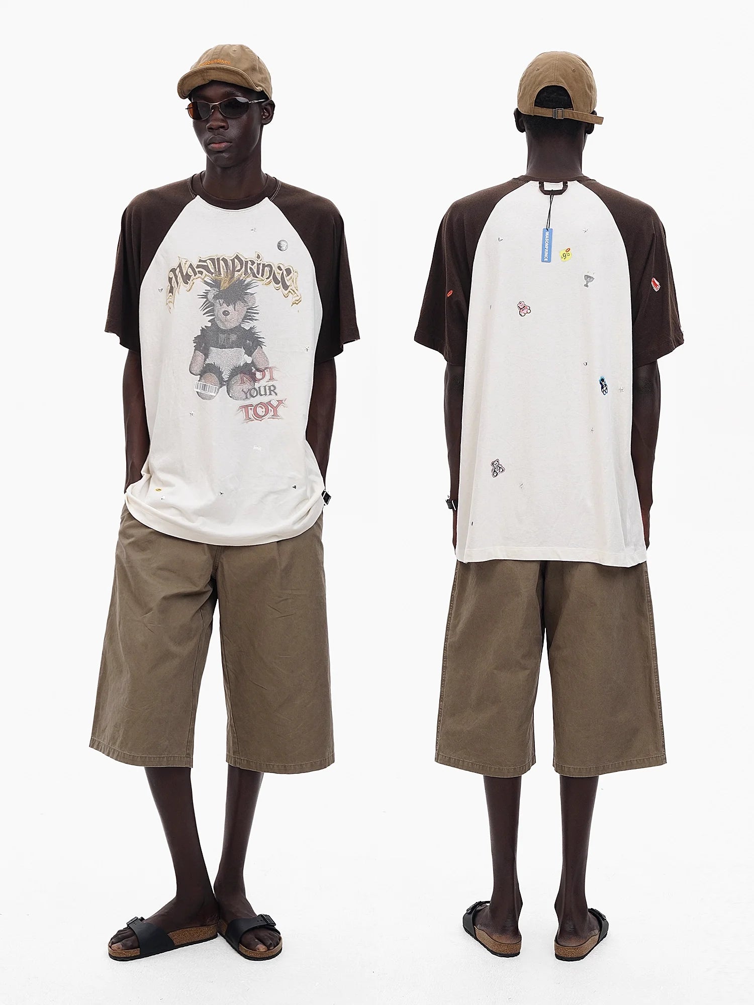 MASONPRINCE Distressed Cartoon Bear Raglan Sleeve Top