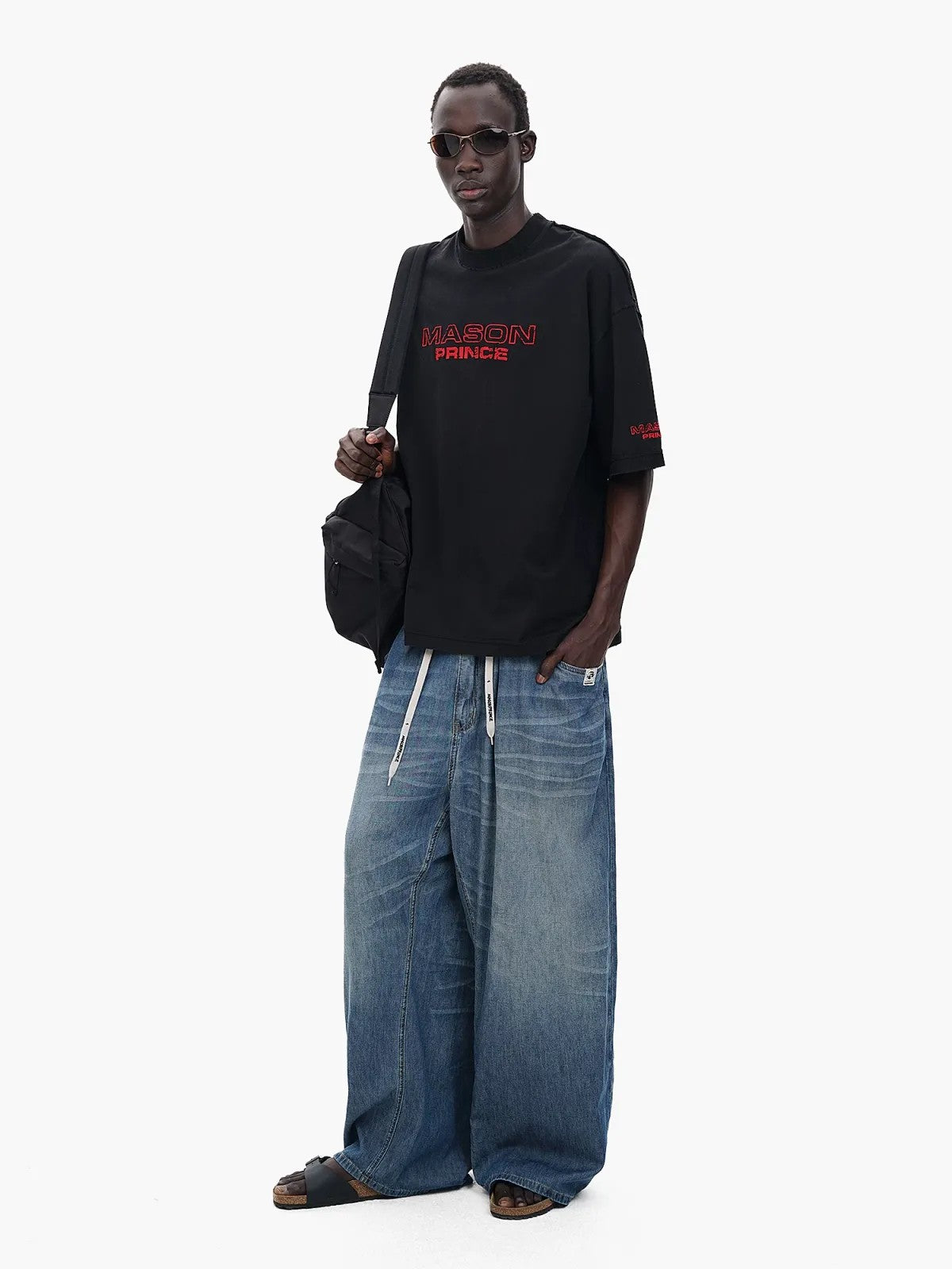 MASONPRINCE's graphic tee in 100% cotton. Distinguished by a distressed double-layer crewneck, textured logo embroidery on the chest, and signature sleeve branding.
