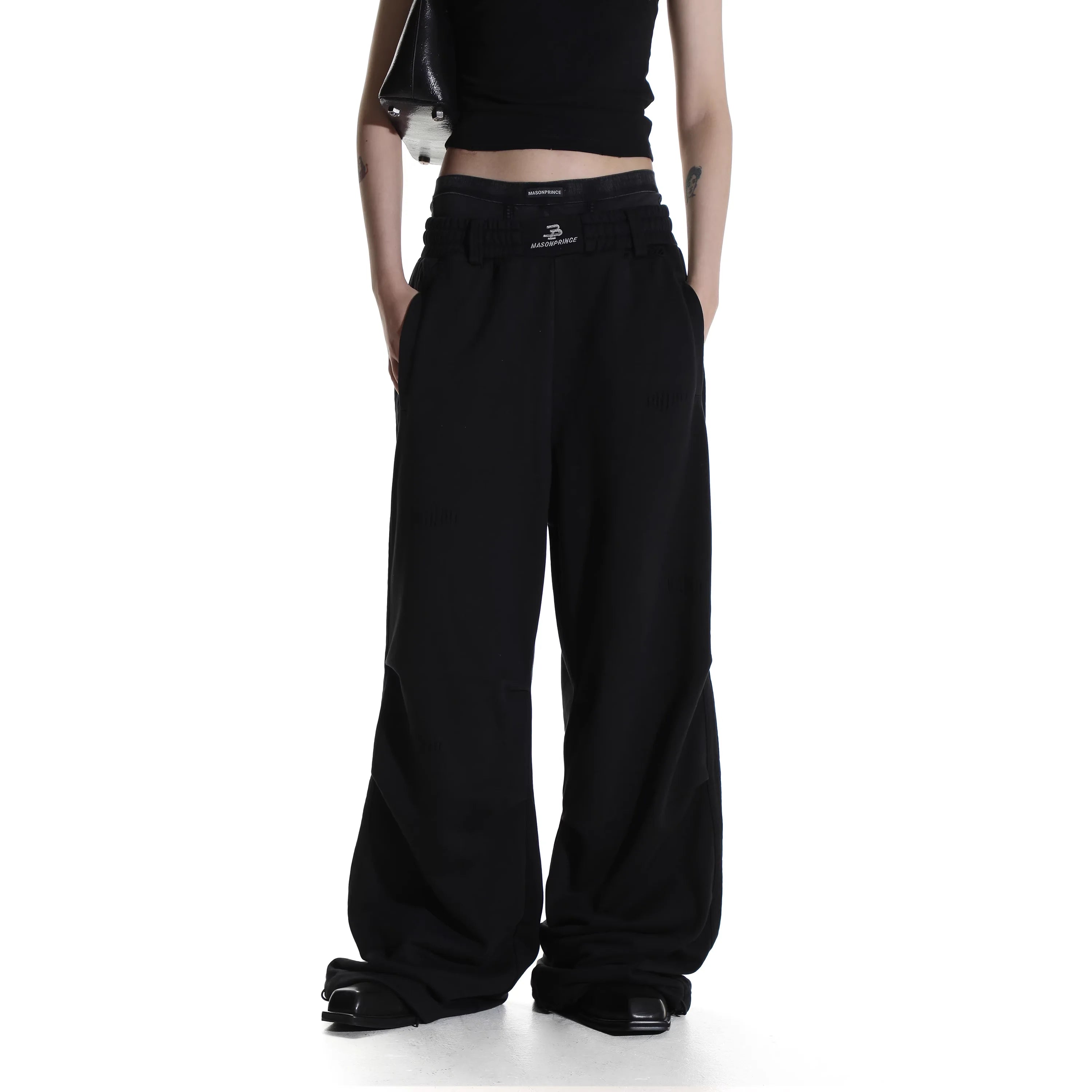 Elevate your streetwear style with these high-waisted striped parachute pants designed for women. Featuring a distinctive wide-leg silhouette, these pants offer a relaxed, oversized fit that drapes effortlessly over the footwear. The comfortable elastic waistband adds a sporty edge, while the visible logo patch enhances the modern aesthetic. Crafted from a durable, textured fabric with a naturally distressed look, these pants are perfect for creating bold casual or athleisure outfits. Pair with a crop top or oversized hoodie for a statement look.