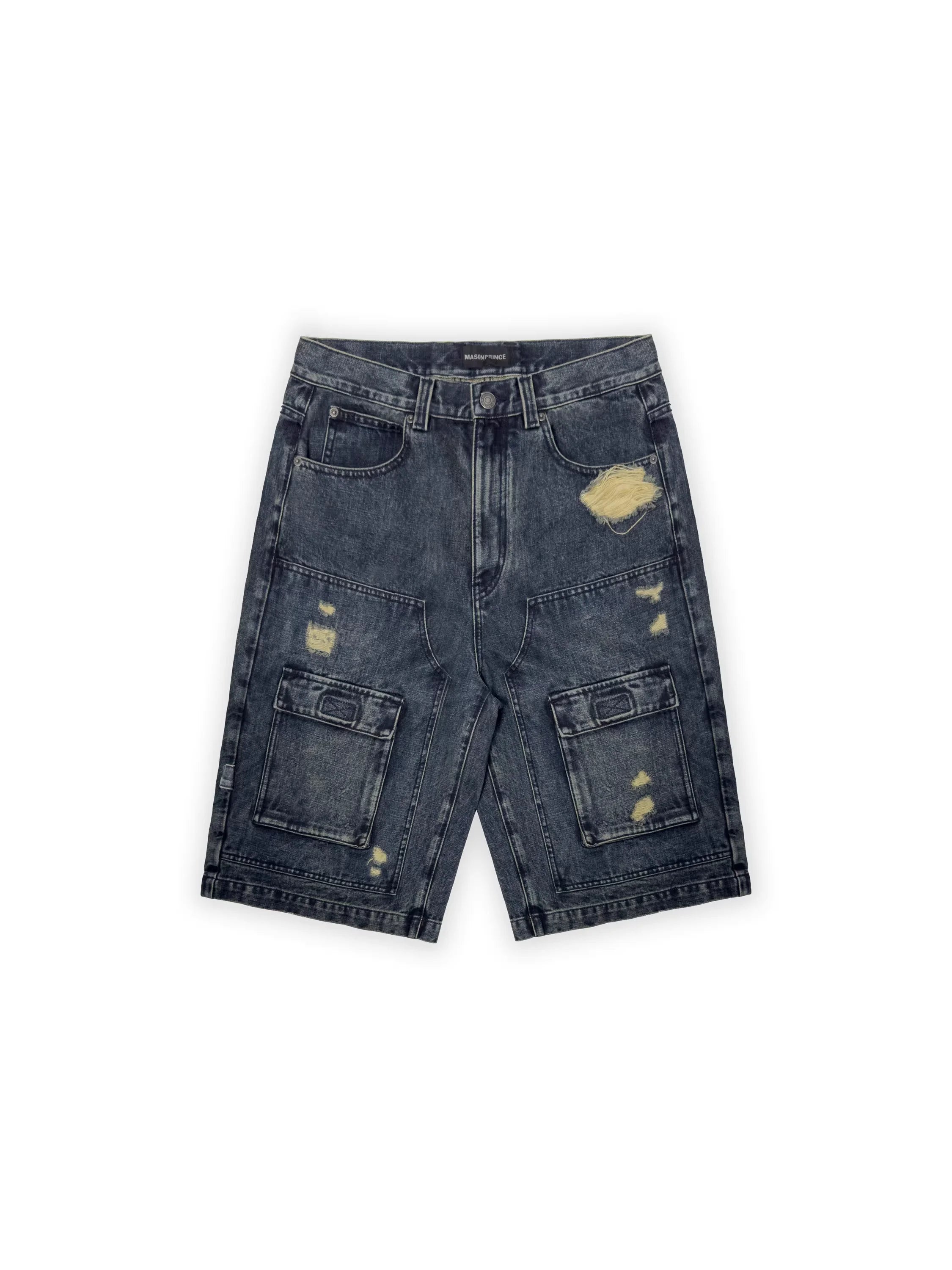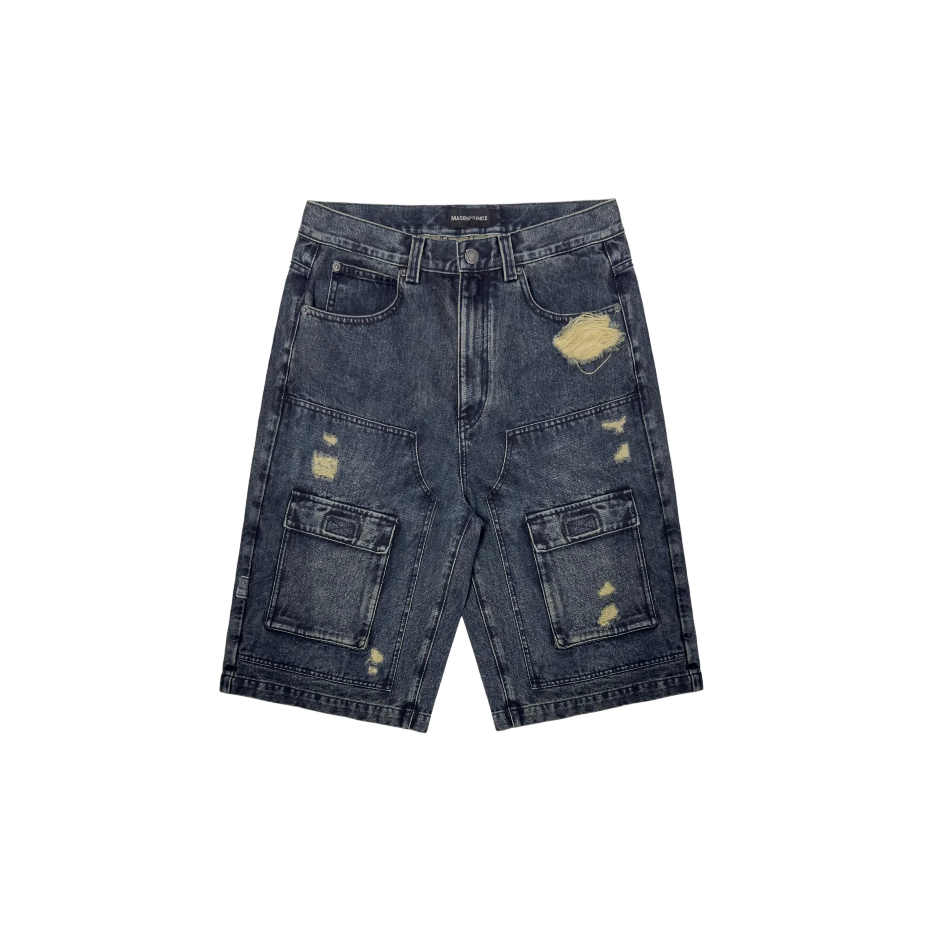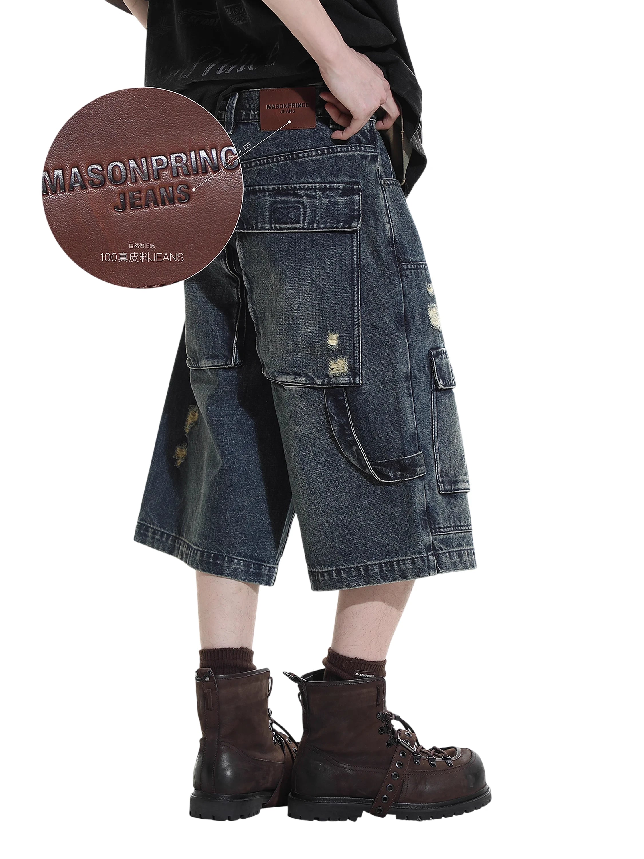 MASONPRINCE Men's Retro Washed Knee-Length Denim Cargo Shorts