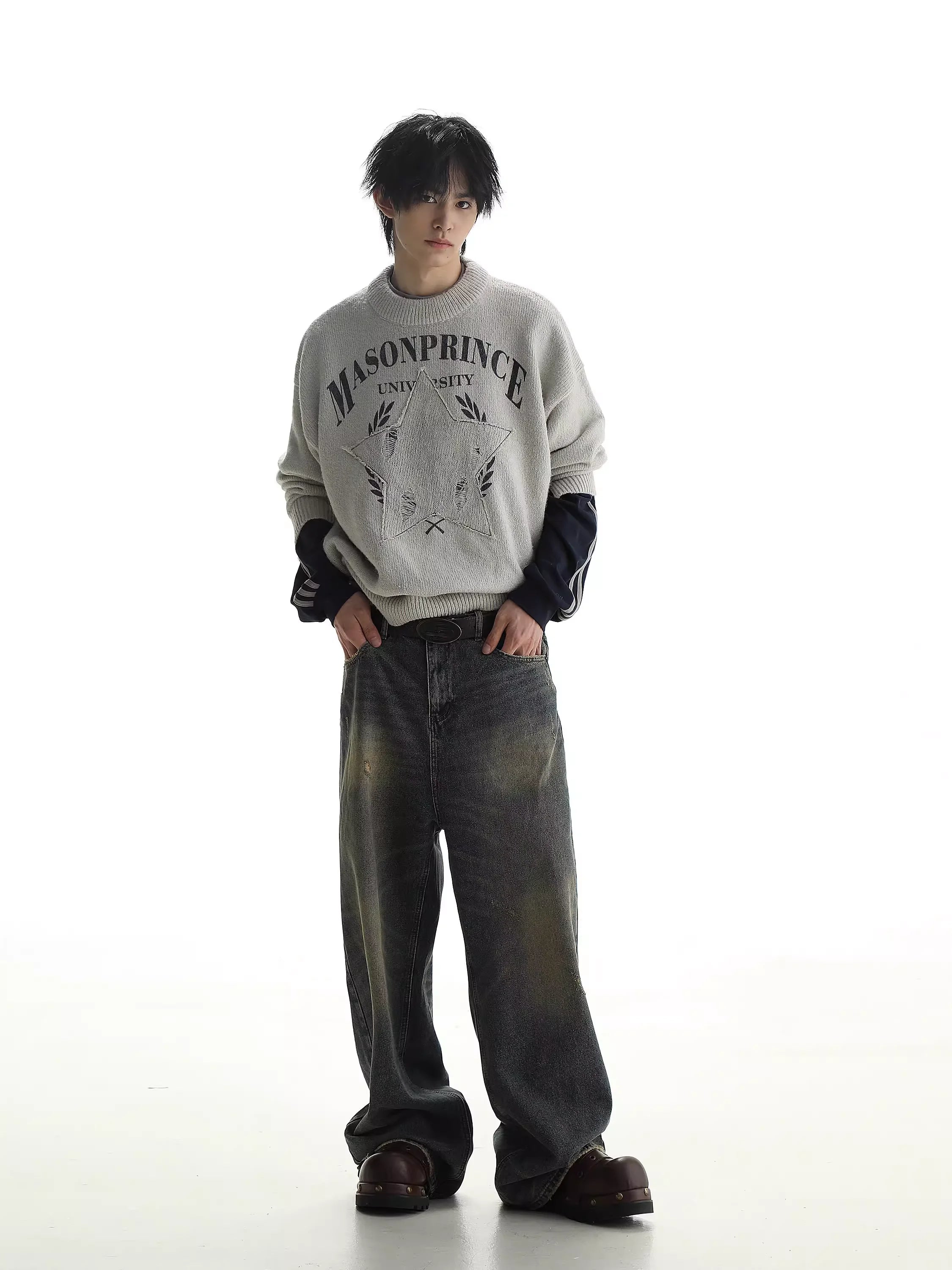 MASONPRINCE Relaxed Star Graphic Sweatshirt for Autumn and Winter