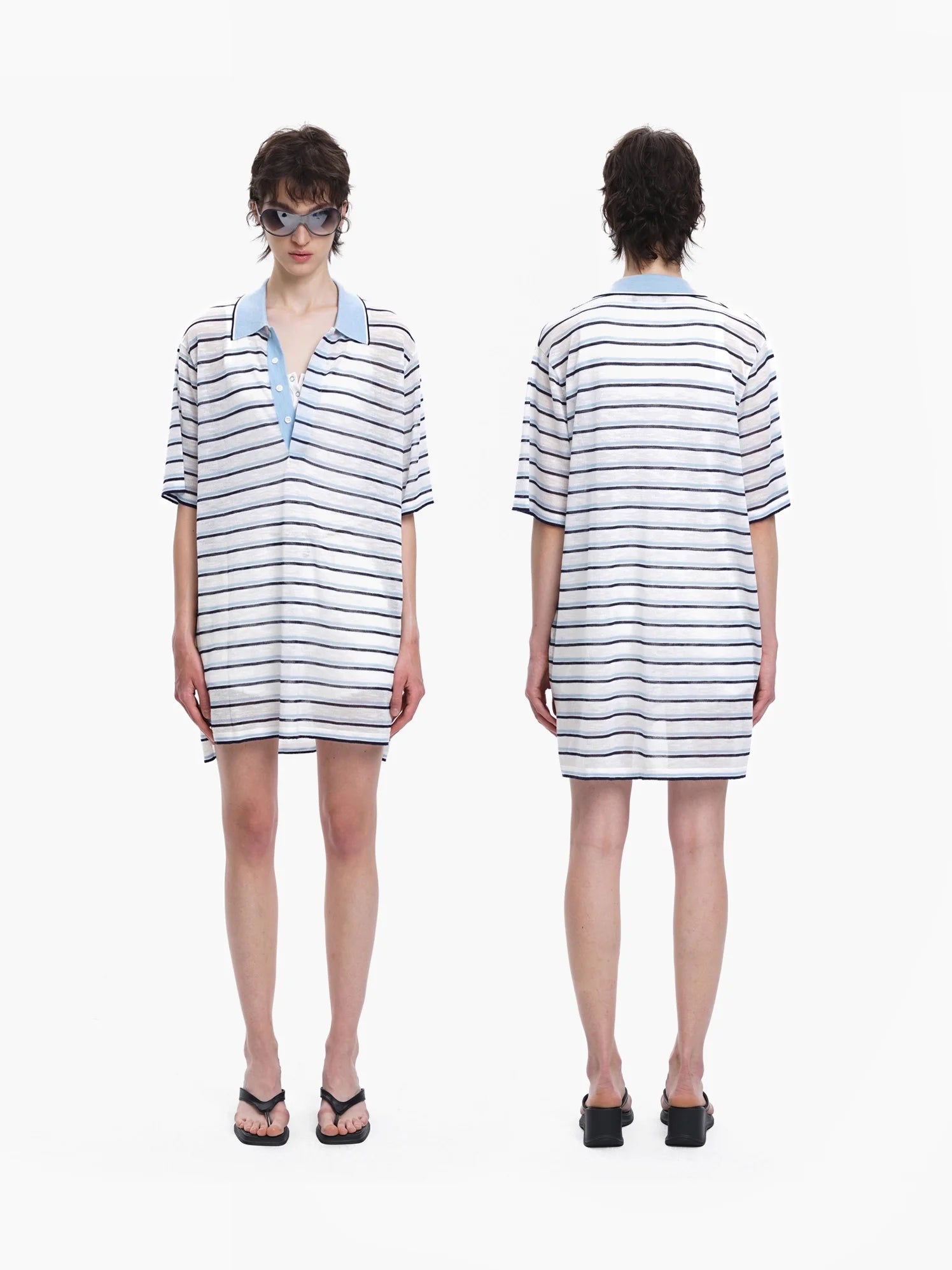 MASONPRINCE Tencel Linen Striped Polo Shirt