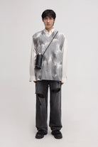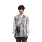 This men's wool vest features a modern tie-dye pattern in shades of charcoal and gray, creating a dynamic, cloud-like texture. Designed with a ribbed knit and V-neck cut, it offers a comfortable, relaxed fit ideal for layering over shirts. The sleeveless design makes it versatile for transitional weather, while subtle chest branding adds a refined touch. Perfect for casual and contemporary styling.