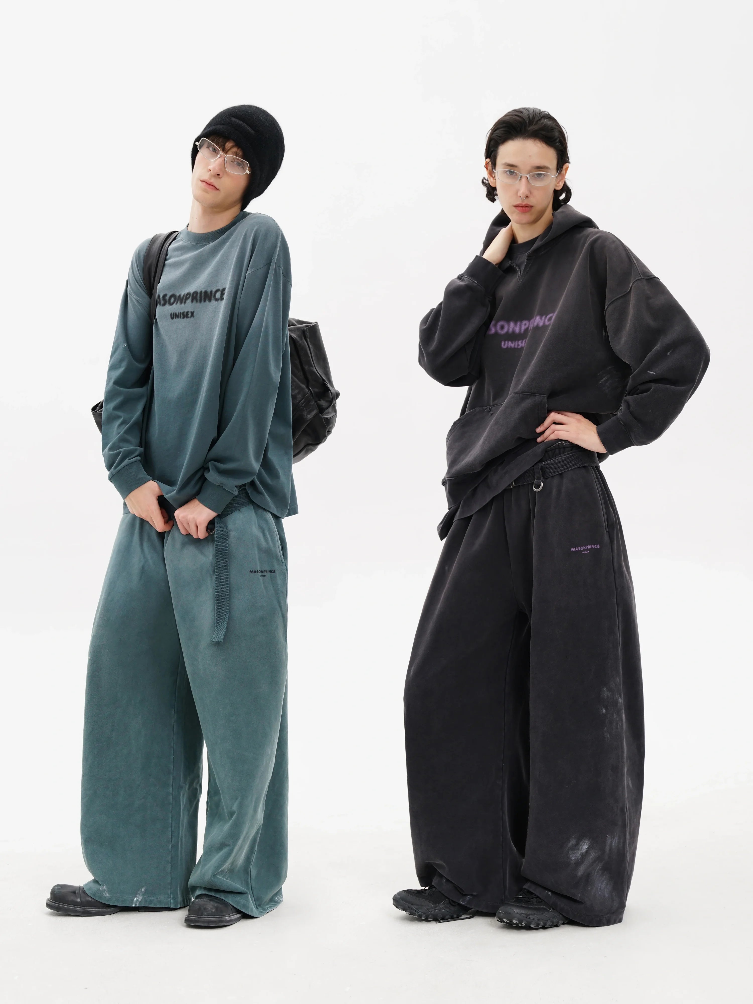 MASONPRINCE Unisex Layered Washed Sweatshirt and Wide-Leg Pants Set