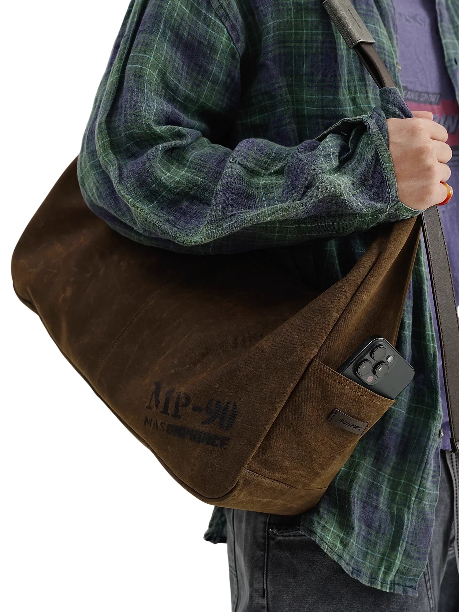 MASONPRINCE Waxed Canvas Crossbody Bag with Adjustable Leather Strap